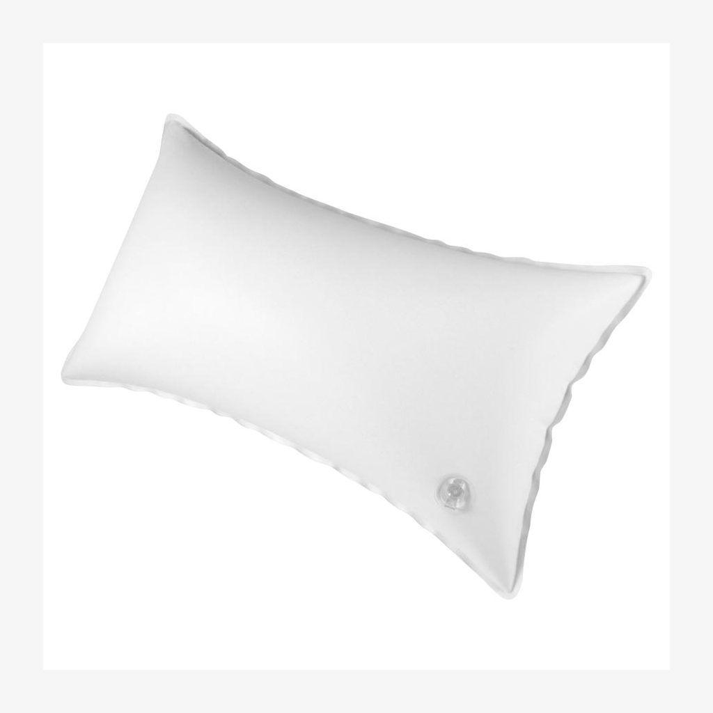Almohada Inflable de PVC. Se entrega desinflada dentro de una bolsita transparente. Se puede imprimir fácilmente en serigrafía ya sea desinflada o inflada.
