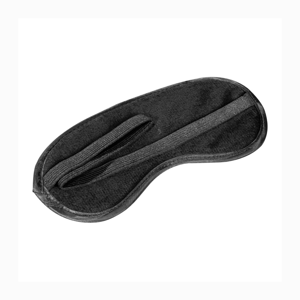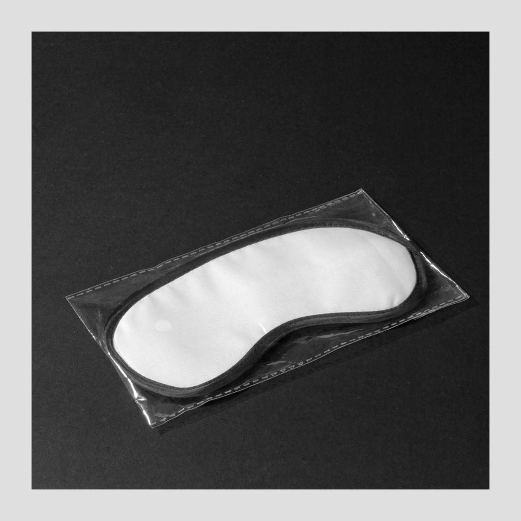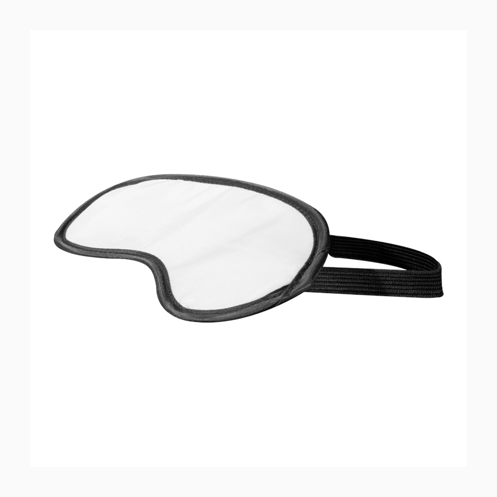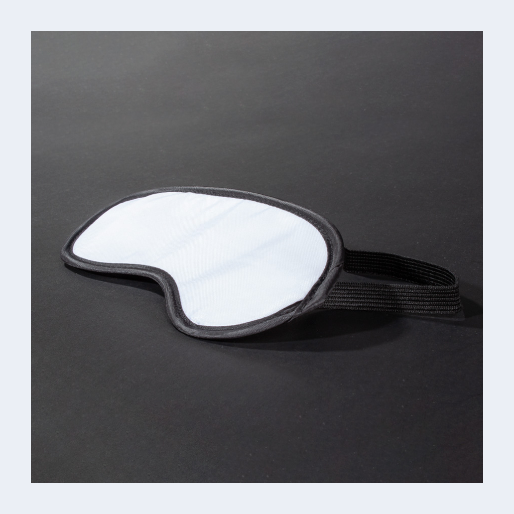 Antifaz (máscara de descanso) de Poliéster blanco con base y elástico negros. Ideal para Sublimación.