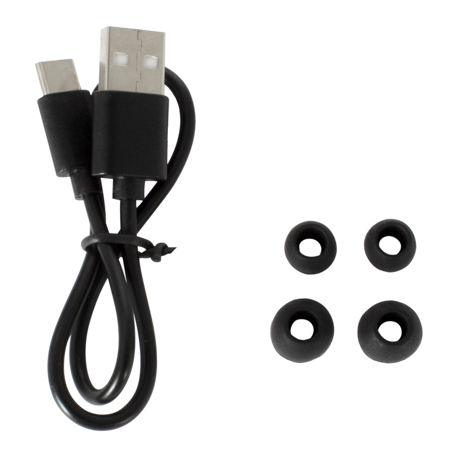 • Accesorios: Estuche de Carga de Batería, Auriculares TWS inalámbricos, Cable de Carga USB, Almohadillas tamaños S y M, Manual de Instrucciones en Inglés y Español.