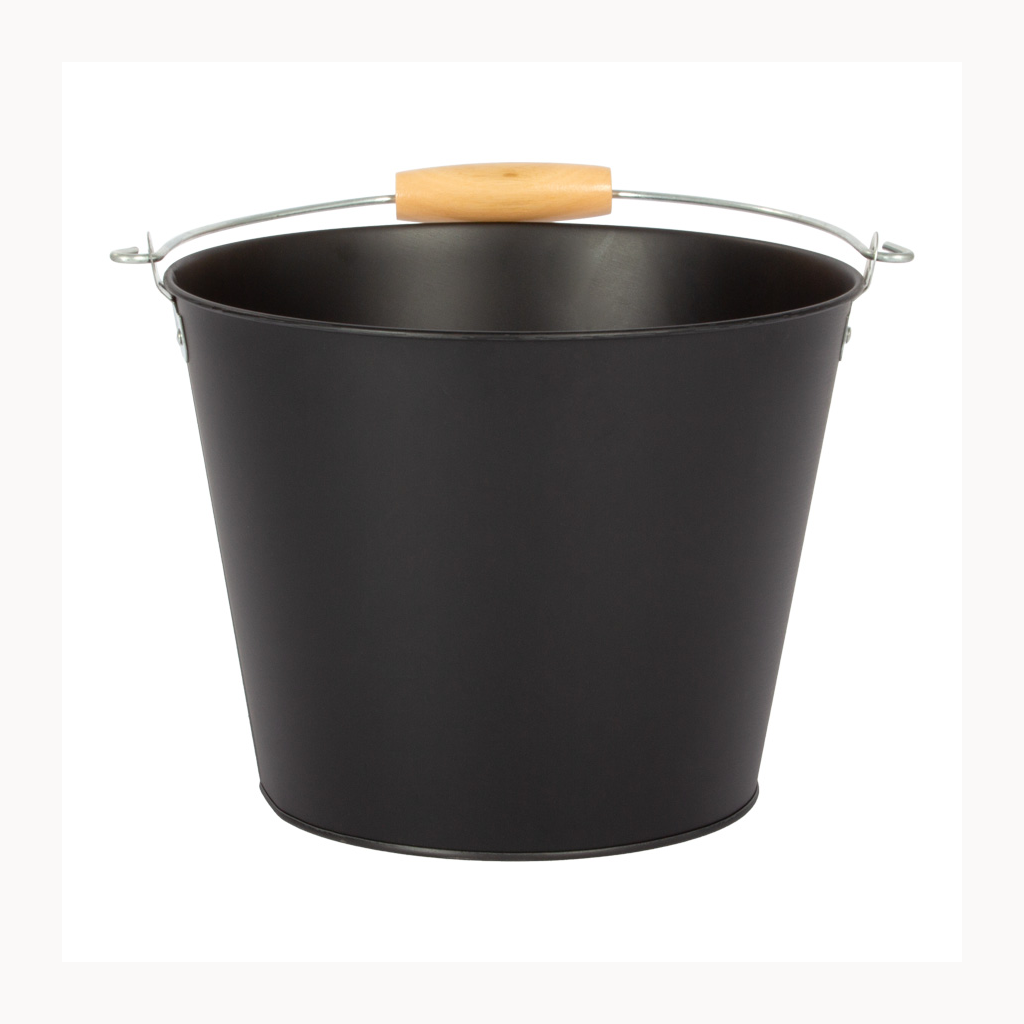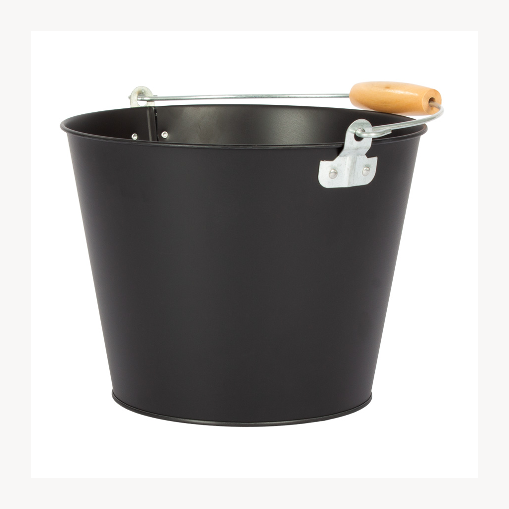 Balde-Hielera de 5.4 litros de capacidad, fabricado en Acero Galvanizado de 0.28mm de espesor, pintado color negro. Con asa metálica y mango de madera de pino. No incluye tapa.