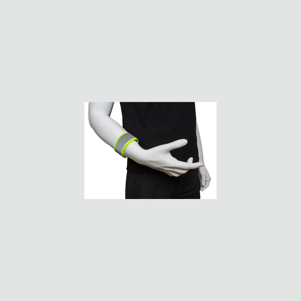 Banda (cinta) elástica reflectante para brazo, con 3 ajustes de velcro. Se puede usar en muñeca, antebrazo o sobre el bíceps. Viene en práctica bolsa de polipropileno con orificio para colgar en ganchera.