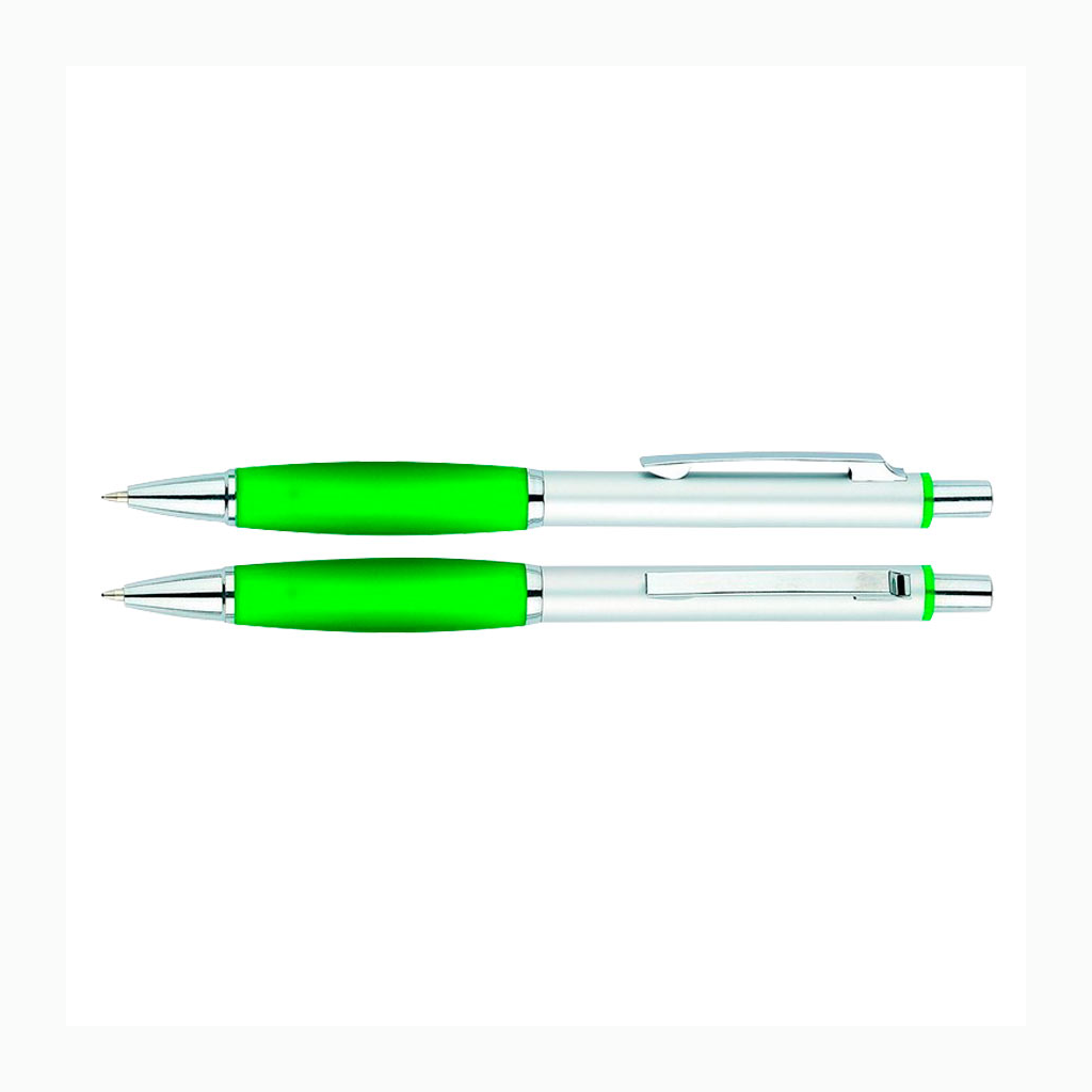 Bolígrafo de Aluminio modelo «Winner», con grip de color y terminales cromados. Escritura azul.
