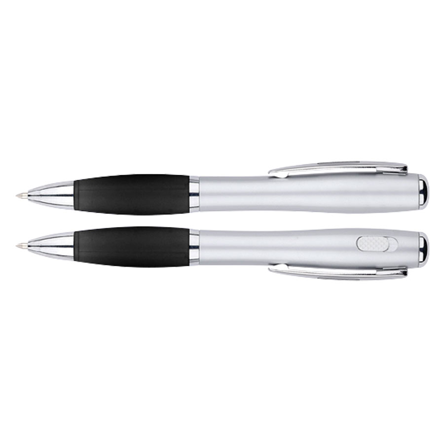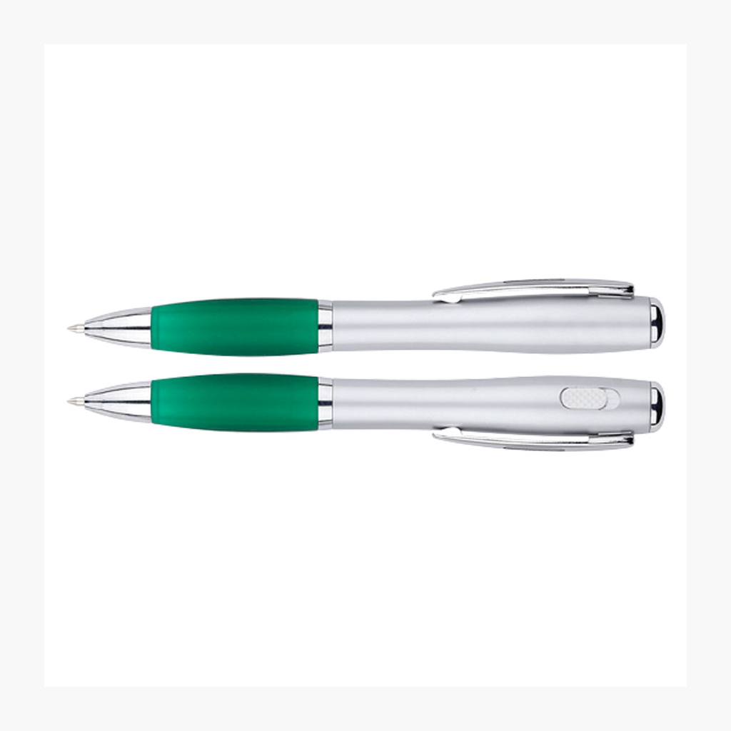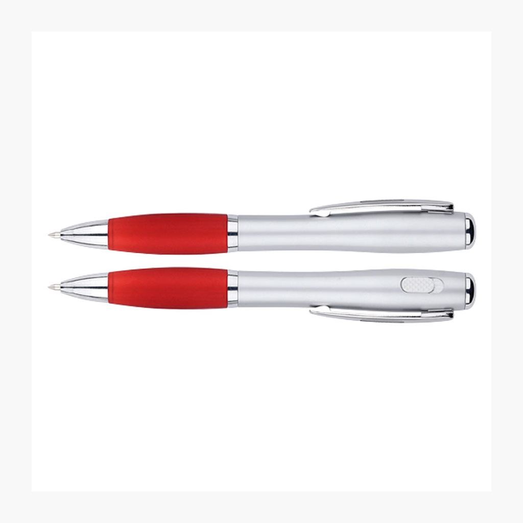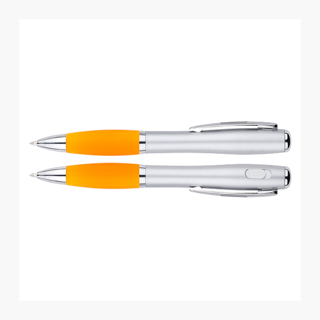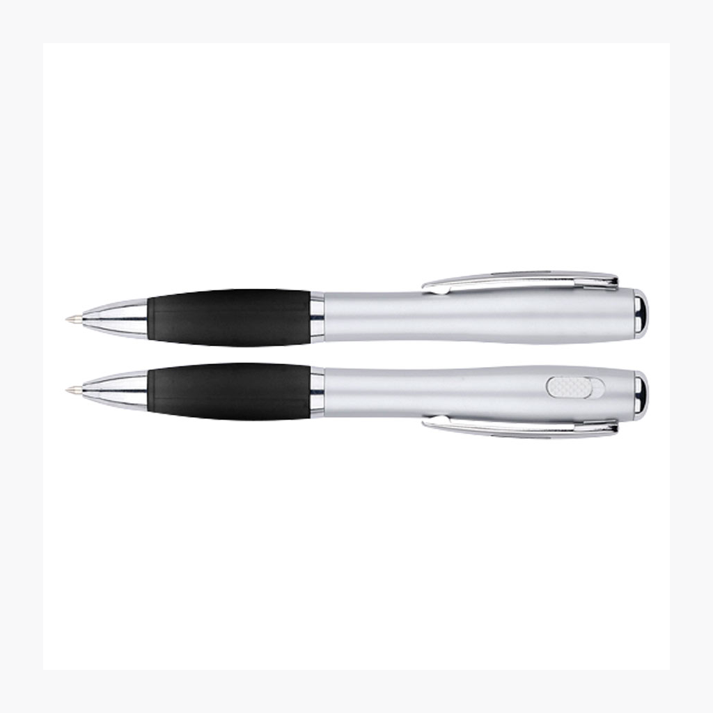 Bolígrafo plástico con linterna LED. Escritura Azul.