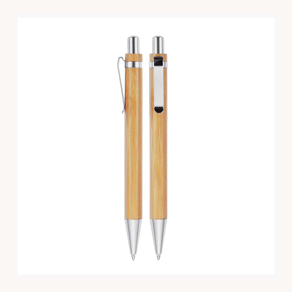 Bolígrafo de Madera de Bambú, con clip metálico. Escritura azul.