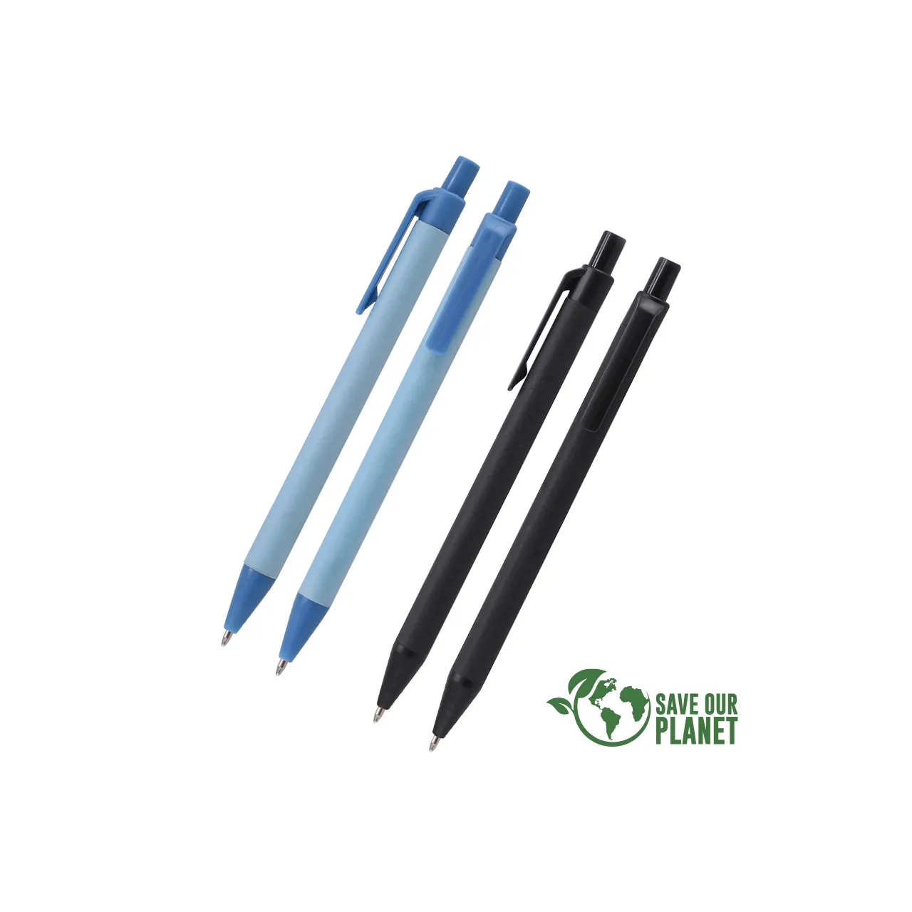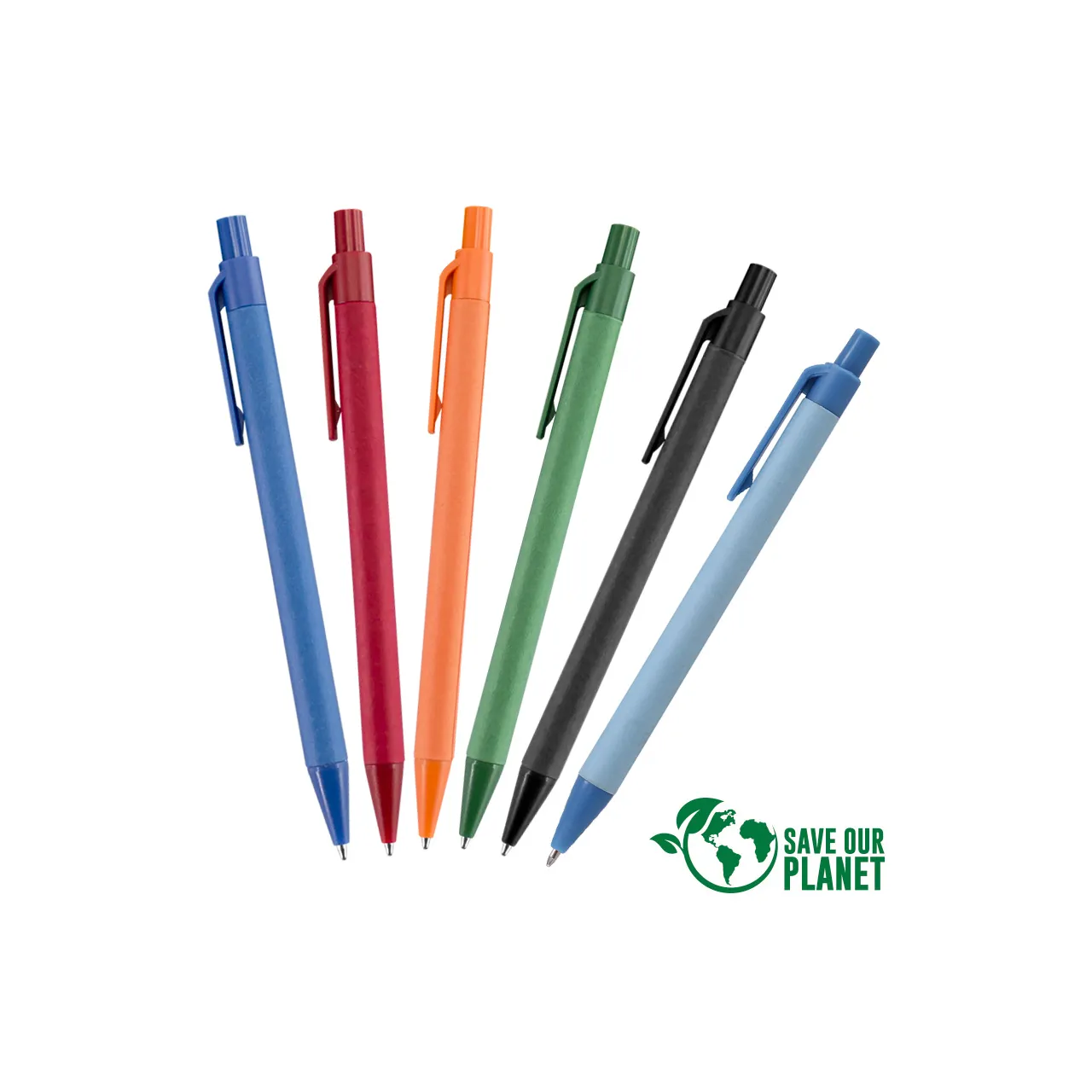 Bolígrafo Ecológico con cuerpo de cartón reciclado de color, con terminales de plástico de color PET biodegradable. Escritura Azul.