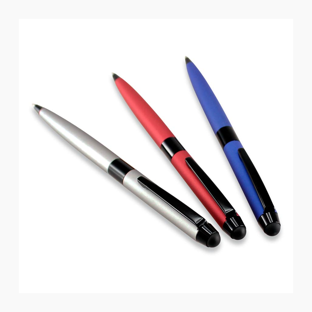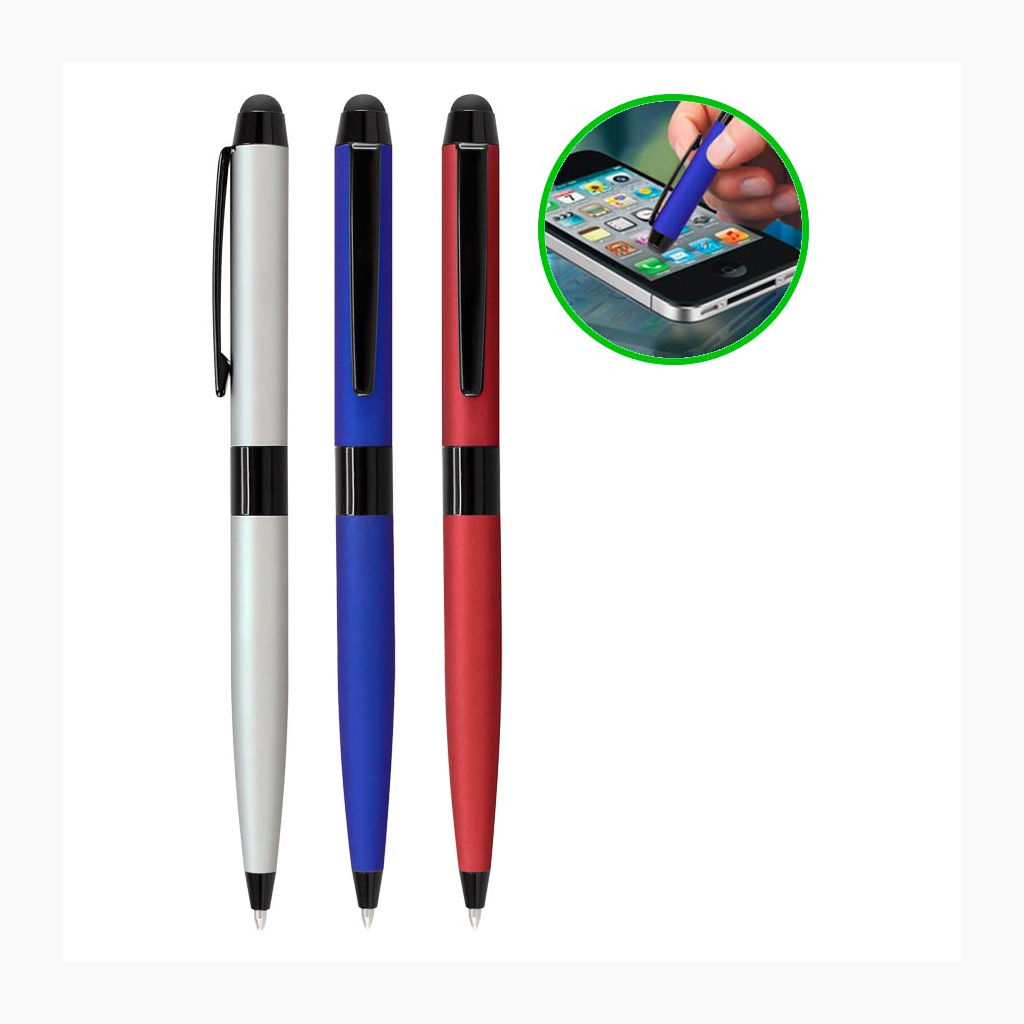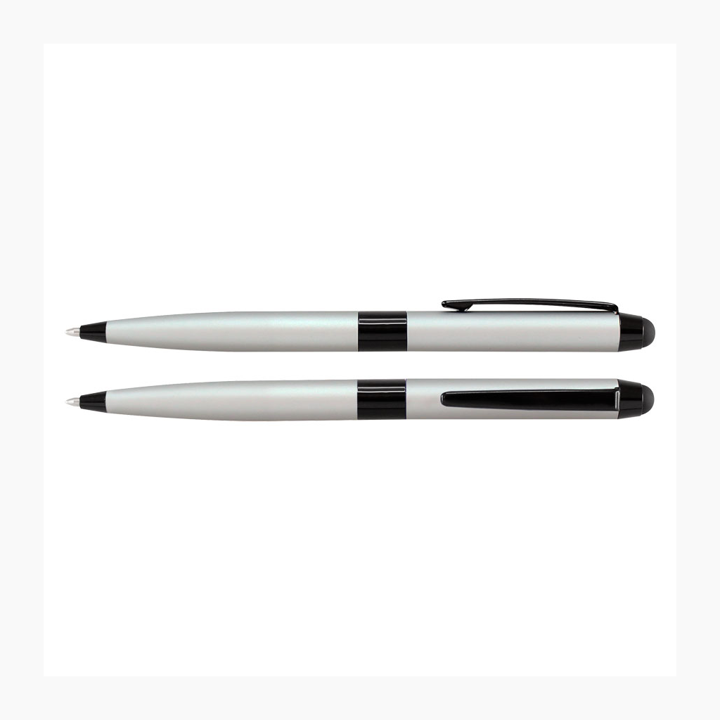 Bolígrafo Metálico modelo «Bauhaus», cuerpo satinado color mate, con goma posterior negra «Touch-Screen» para pantalla táctil. Escritura negra.
