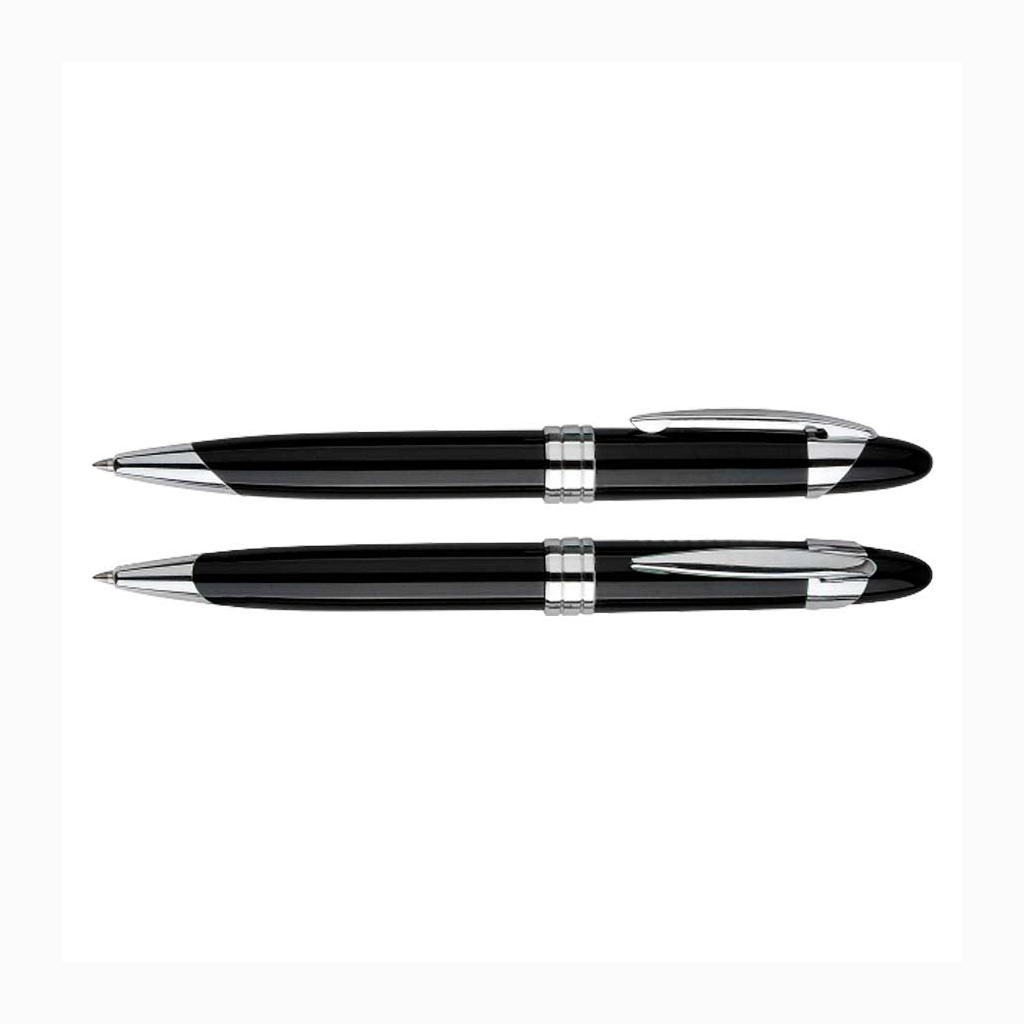 Bolígrafo metálico modelo «Black Pearl», con terminales cromados plata. Escritura azul.