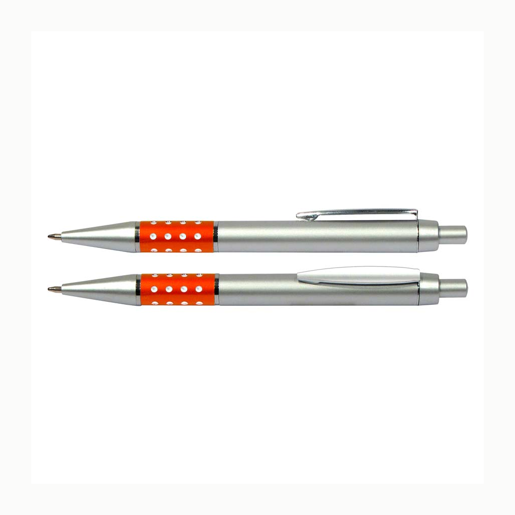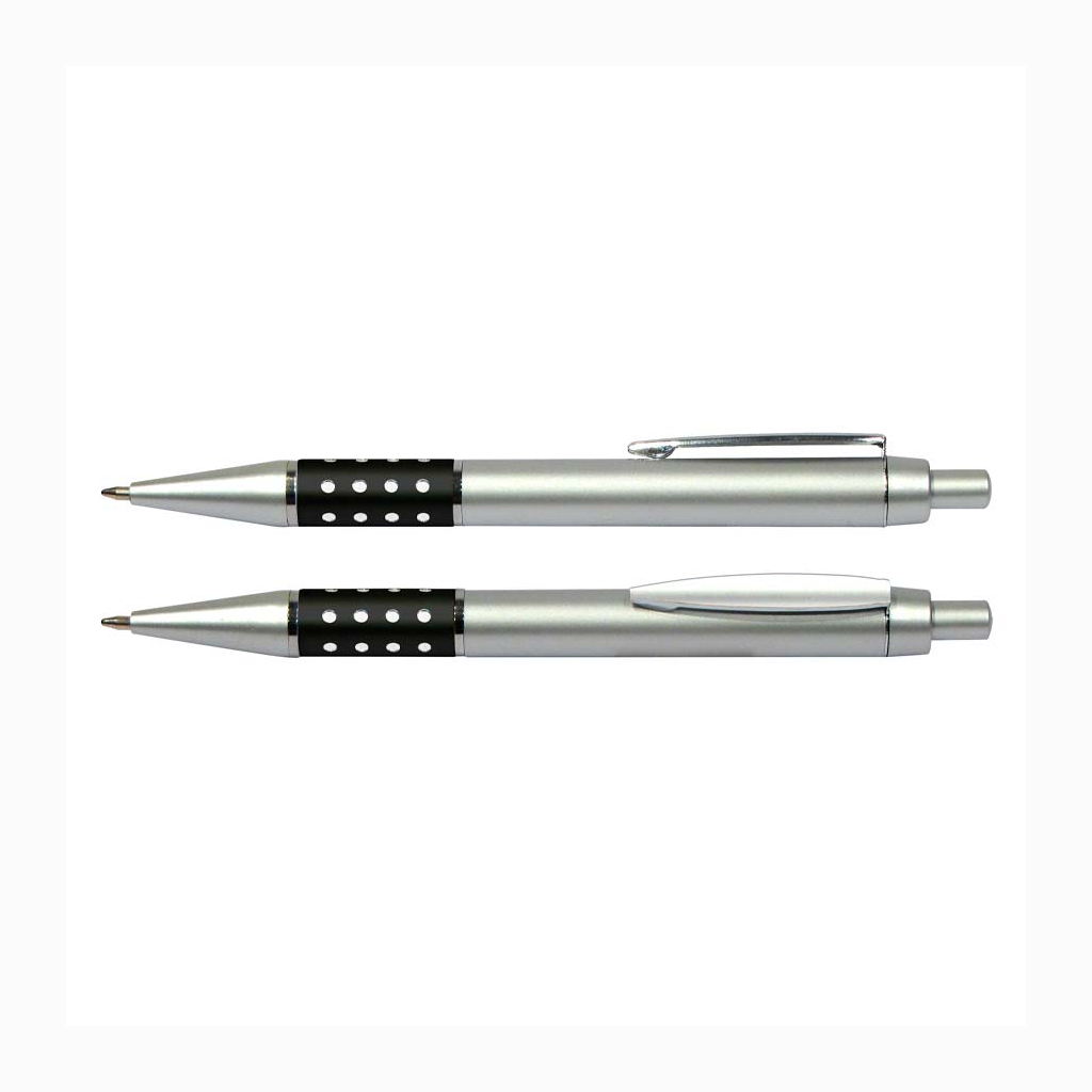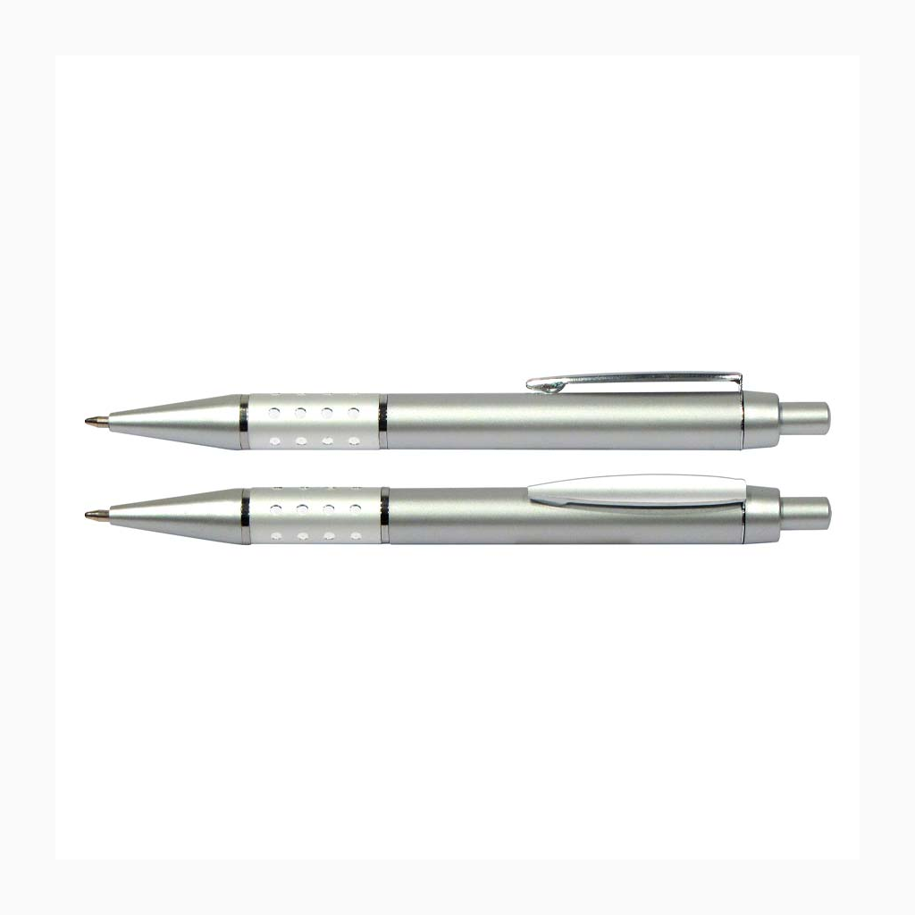 Bolígrafo Plástico Metalizado modelo «Alum», con anillo metálico con orificios. Escritura azul.