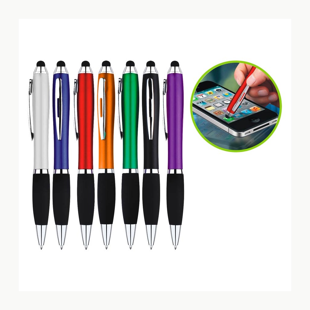 Bolígrafo «Wind Color Touch-Screen» con goma posterior negra para pantalla táctil. Escritura azul.