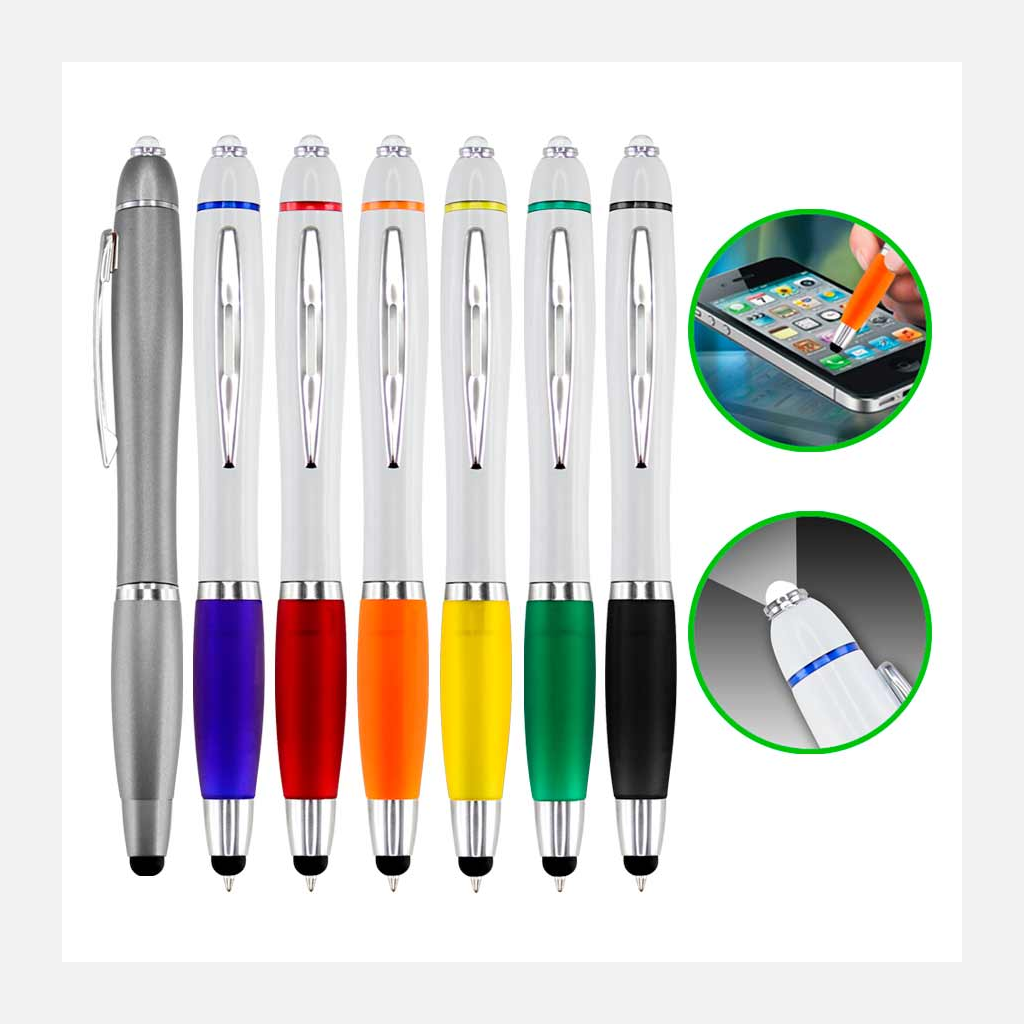Bolígrafo plástico modelo «Wind Stella LED». Incluye puntero «Touch-Screen» y linterna LED. Escritura Azul.