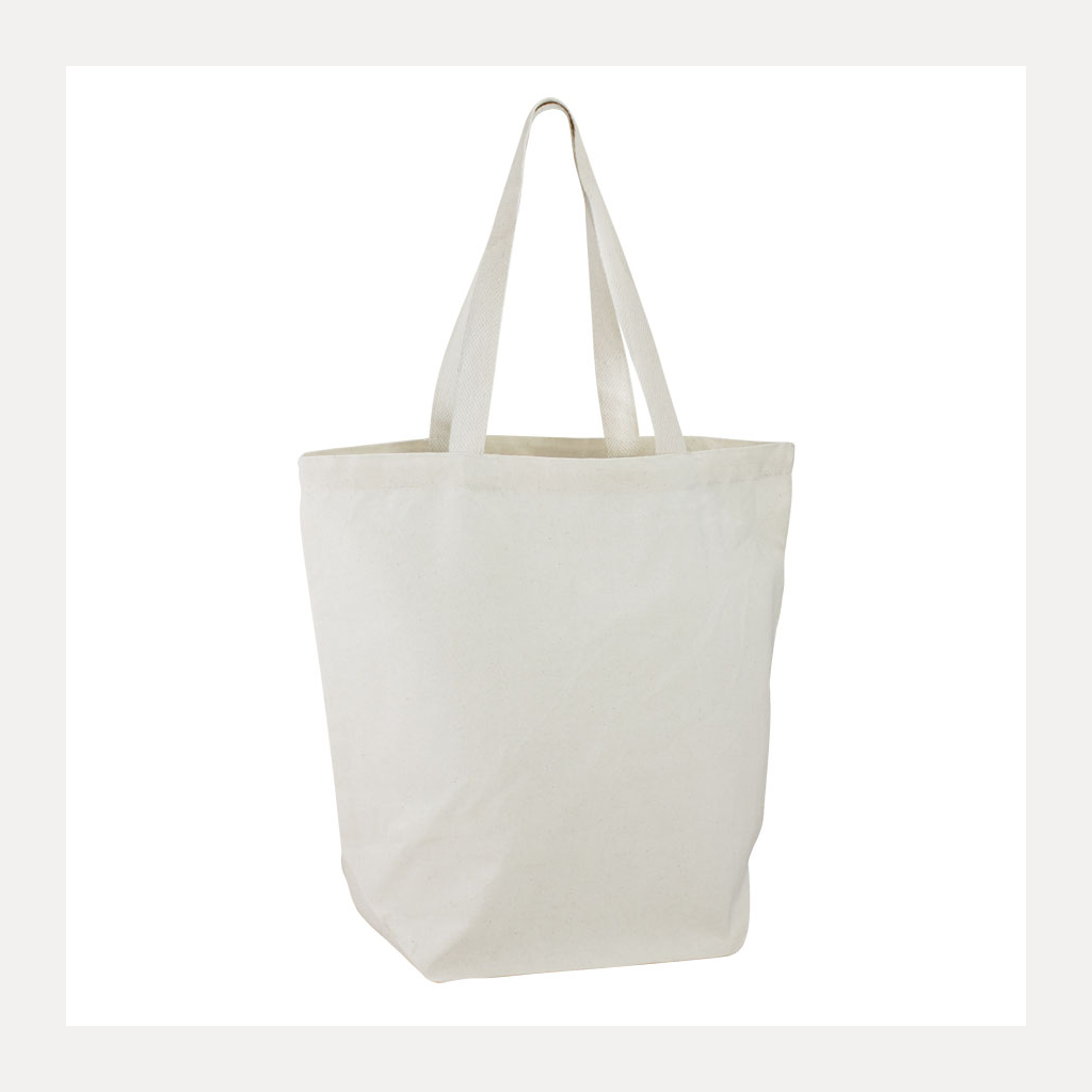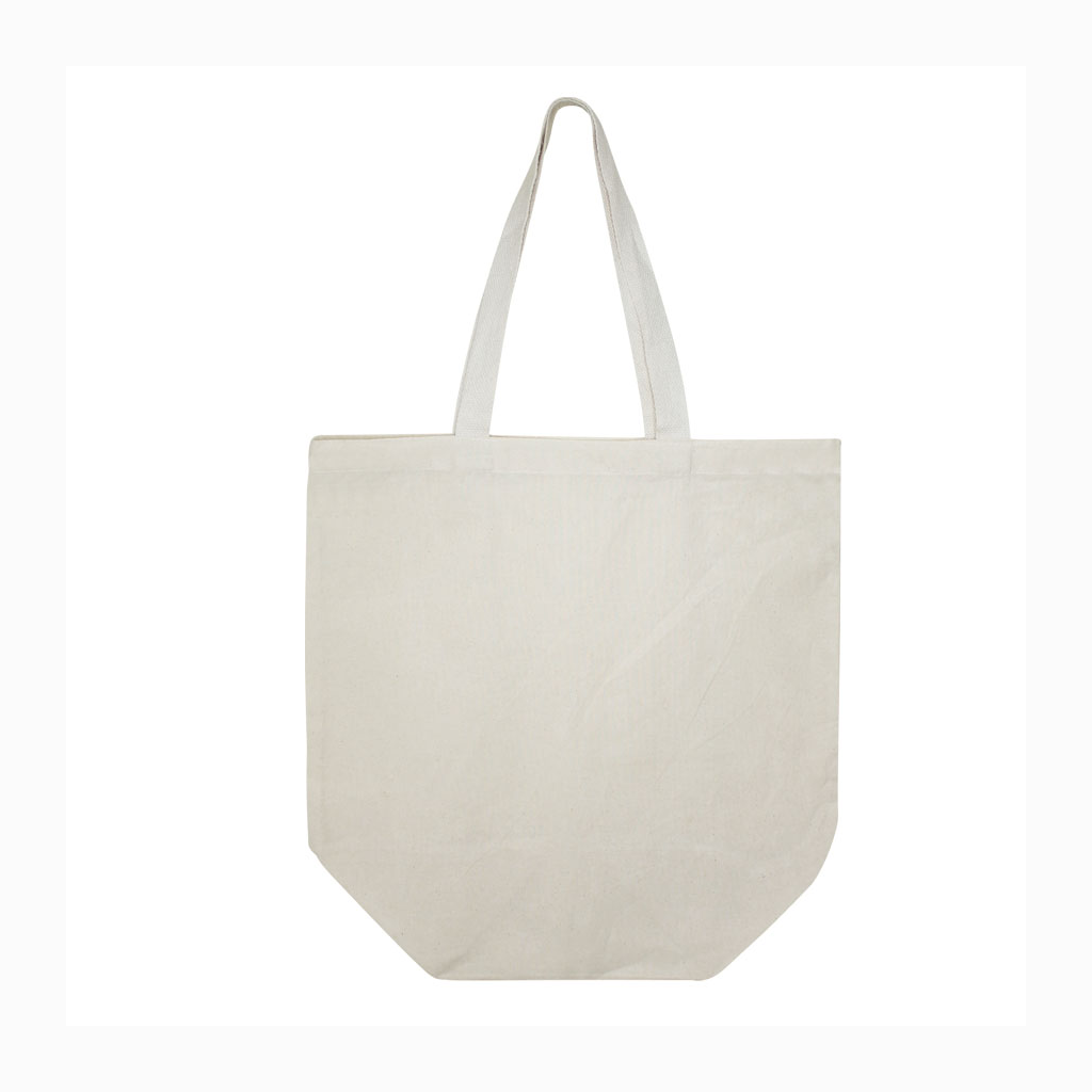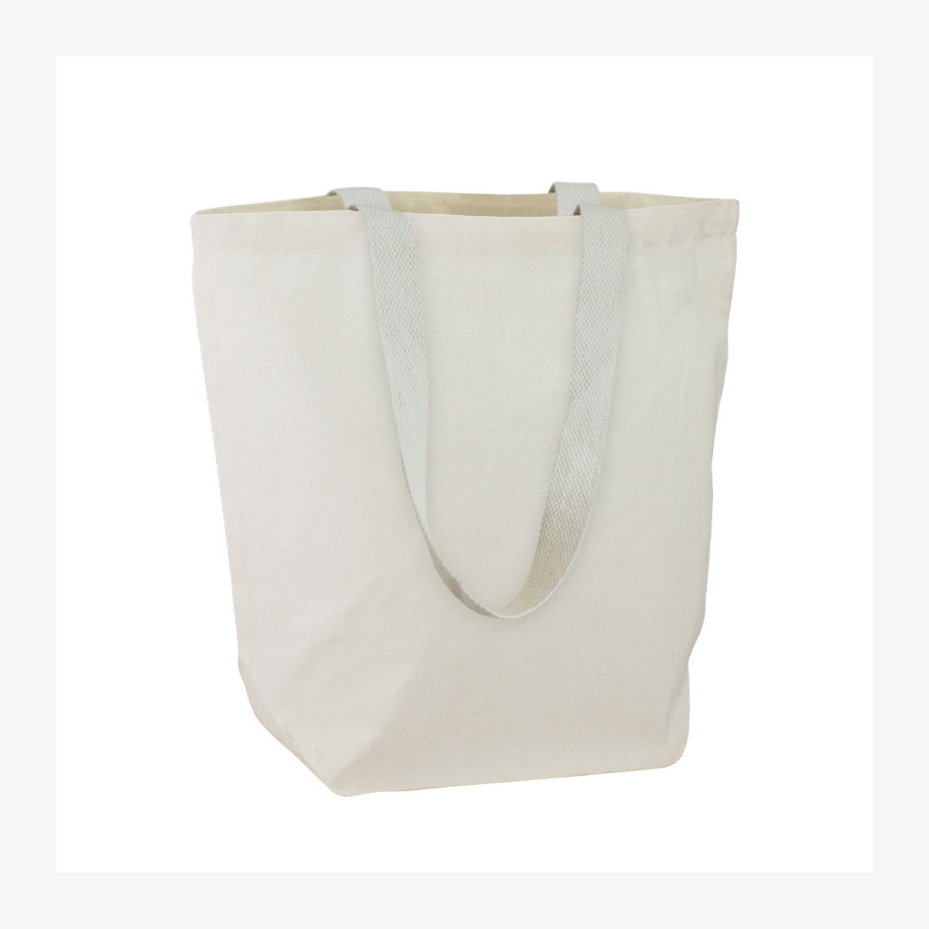 Bolsa 100% Algodón natural de 150g/m2, modelo «Bangladesh». Manillas cintas de Algodón natural de 53 x 2.7 cm. aprox. c/u.