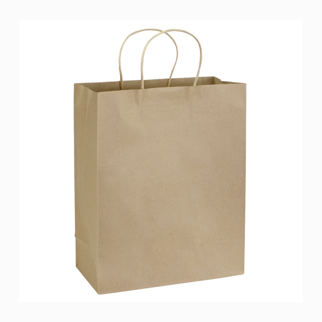 Bolsa de Papel kraft 100% reciclable y reutilizable. Fabricada en resistente material natural de 120g/m2. Contiene asas de papel prensado al tono.