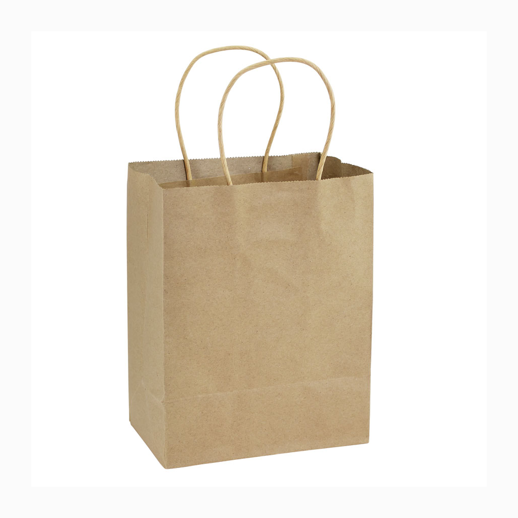 Bolsa de Papel kraft 100% reciclable y reutilizable. Fabricada en resistente material natural de 120g/m2. Contiene asas de papel prensado al tono.