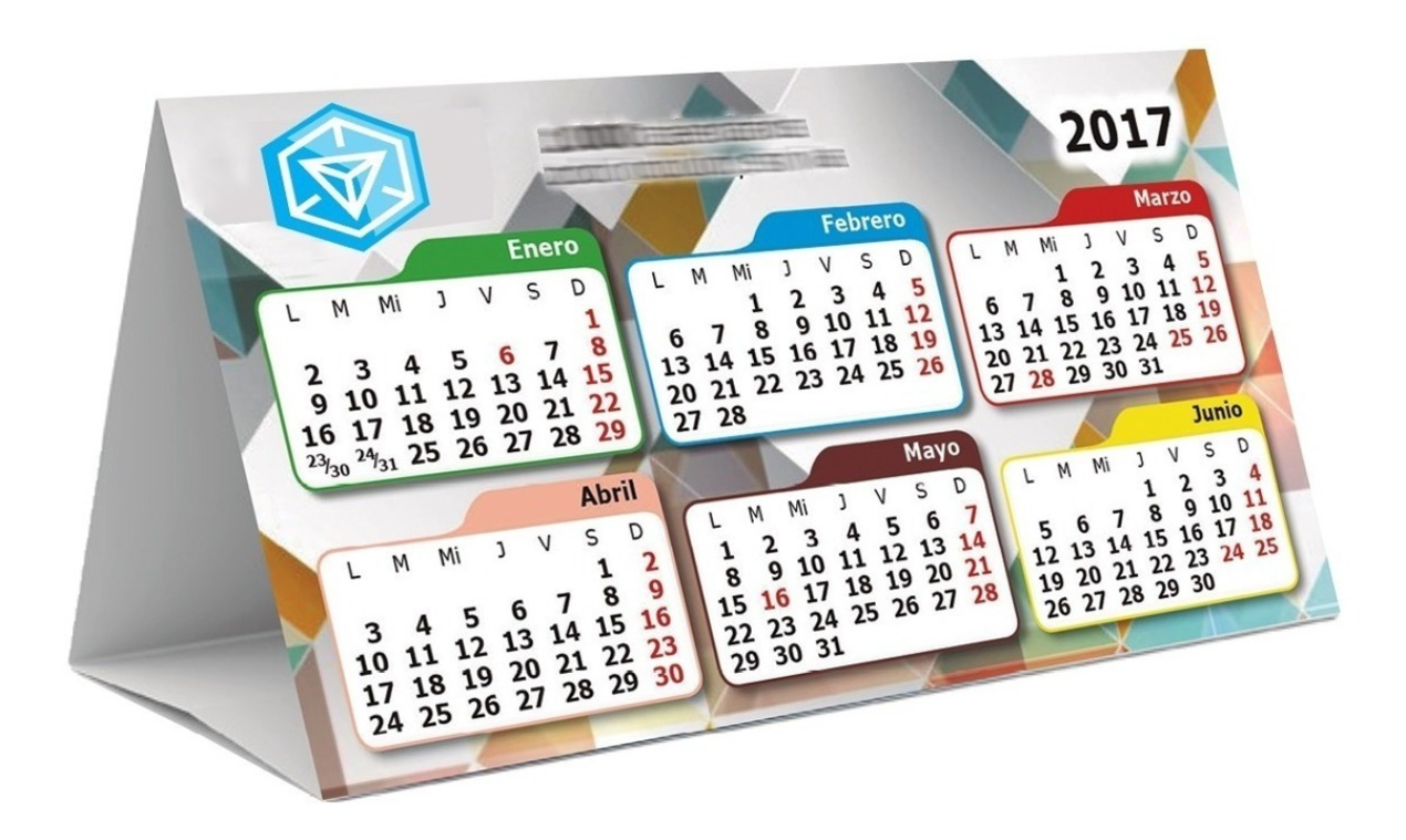 Calendarios Impresos a colores. Papel cartulina, duplex reverso en color blanco de 220 grs. Plisados y doblado. Medidas: 27,5 x 11 x 11 cm aprox.