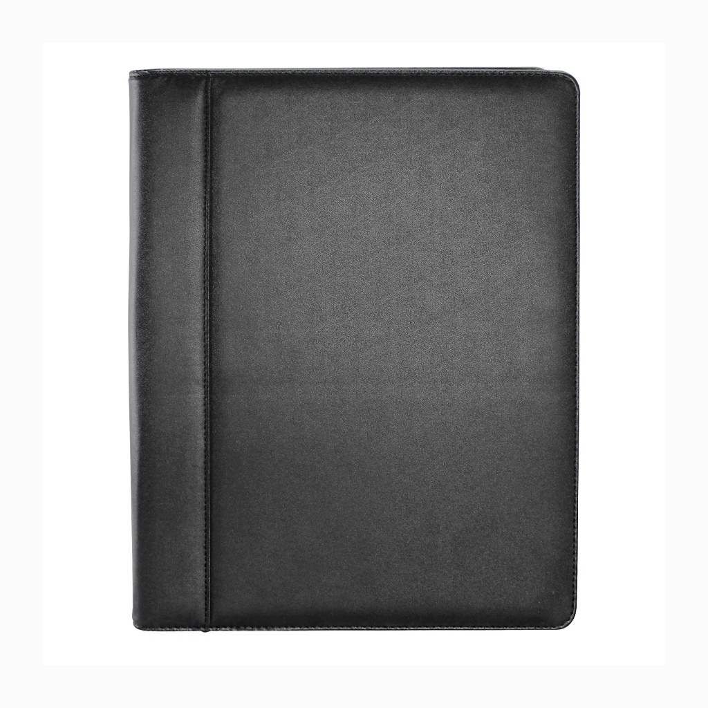 Carpeta Simil Cuero Negro. En el interior incluye Bolsillos para documentos tamaño A4, Compartimentos para Tarjetas Y Porta-Lápices.