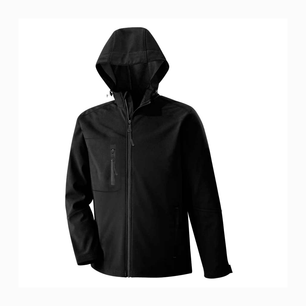 Chaqueta Softshell «IMAGEN» 100% poliéster de 320gr/m2 con gorro (capucha), para HOMBRE, manga larga. Contiene bolsillo interior para esconder reverso del bordado y cierres impermeables (principal y bolsillos). Presentación individual en bolsa de polipropileno transparente.