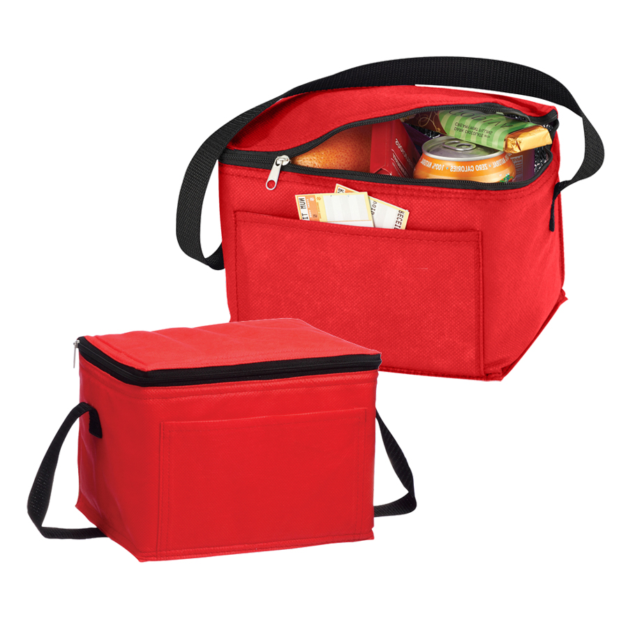 Cooler-Lonchera con bolsillo delantero, en tela no tejida (TNT) de 80g/m2. Interior en tela PVC metalizado aislante.