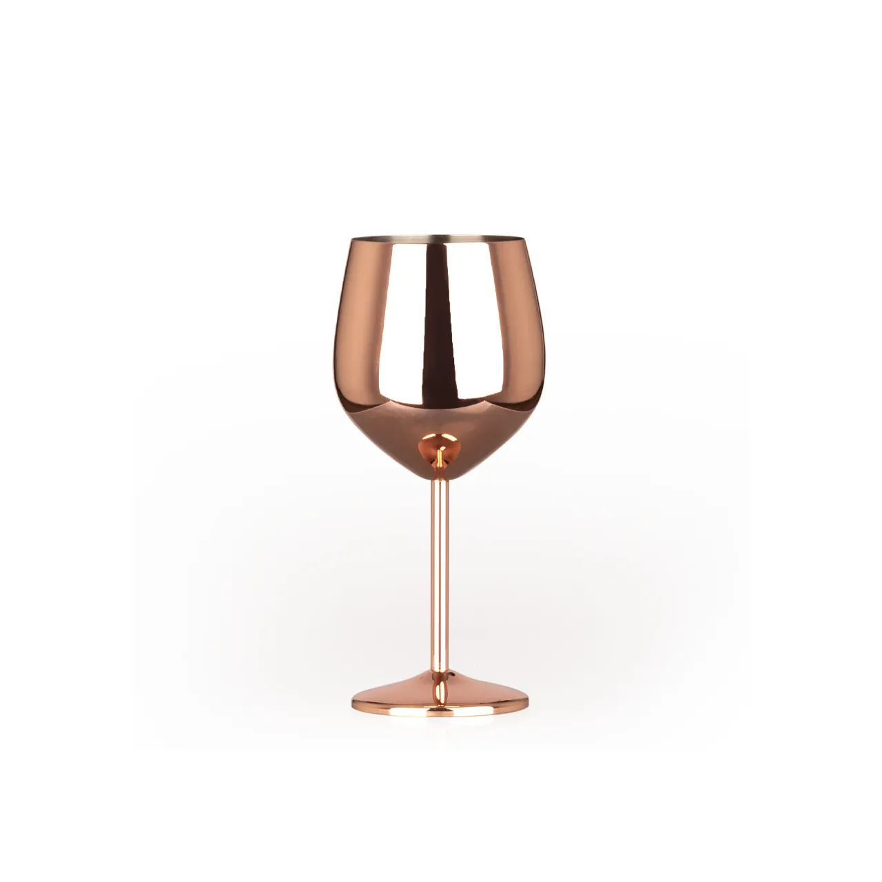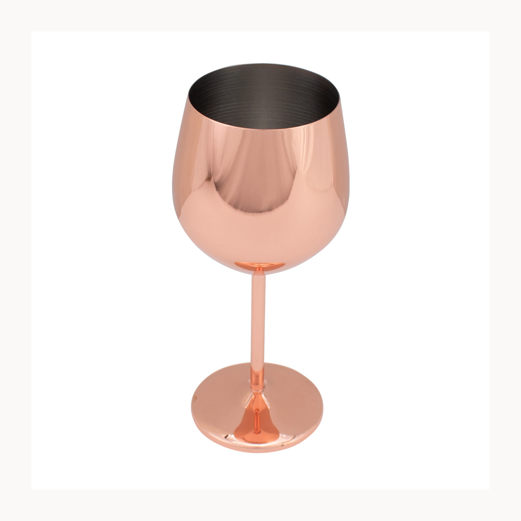 Copa de Acero inoxidable 304 SS de 0.6mm de espesor, con superficie lisa en color encobrizado. Producto BPA FREE, para el contacto con líquidos y alimentos. Capacidad 500ml. Presentación en bolsa PP + caja de regalo de cartón negro.