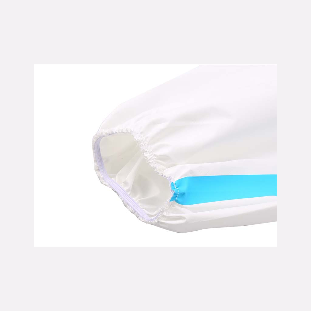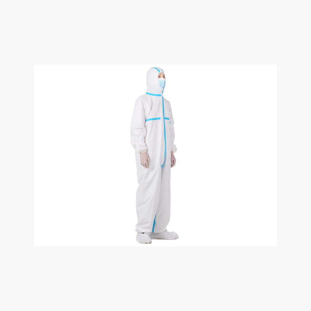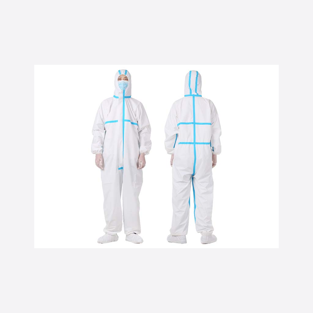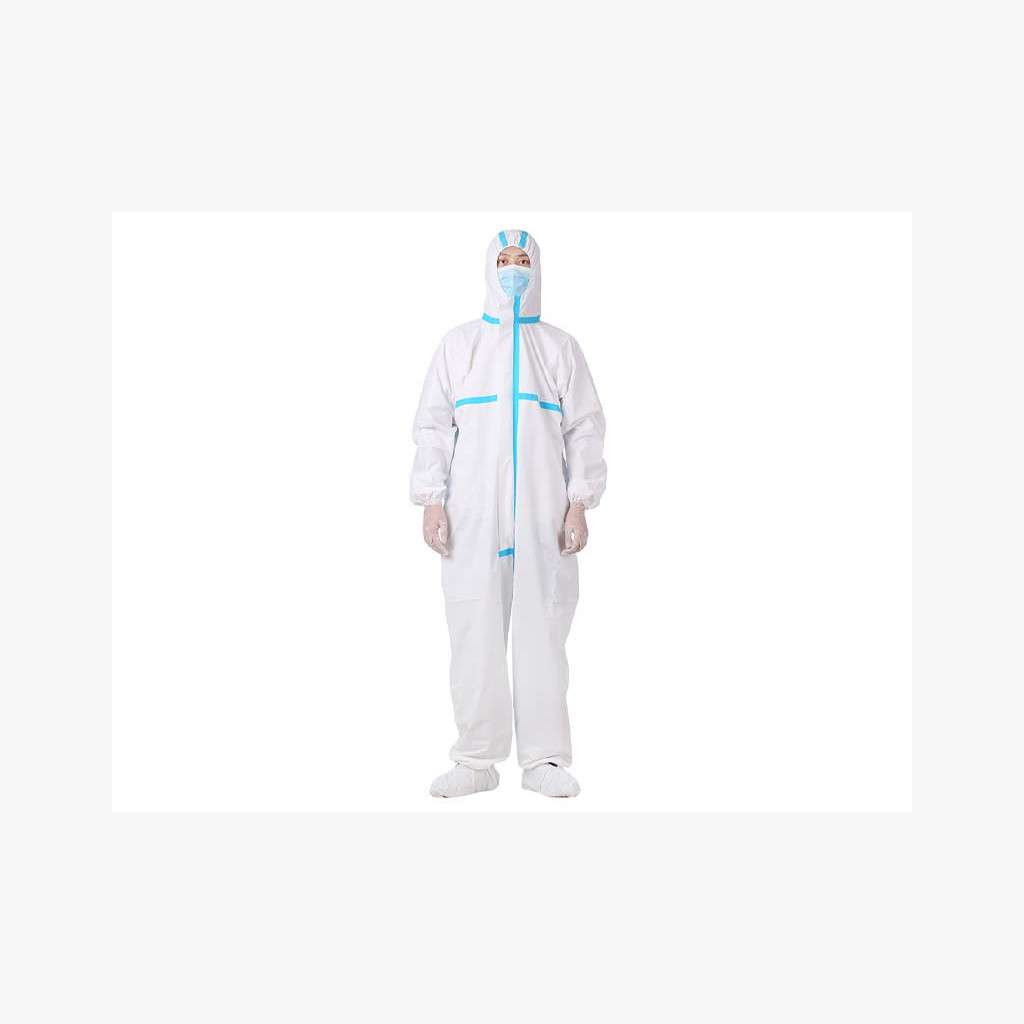 Coverall full protección, en tela gruesa nonwoven impermeable «Melt-Blown» de 120g/m2, para uso quirúrgico, transporte e industrial. Proporciona protección de fluídos líquidos y gaseosos, polvo en suspensión, sustancias dañinas, virus y bacterias. Se recomienda usar encima de la ropa de vestir.