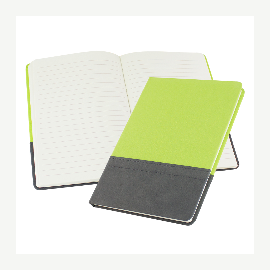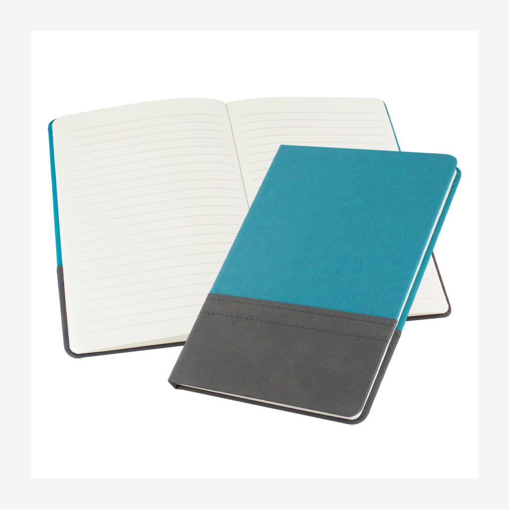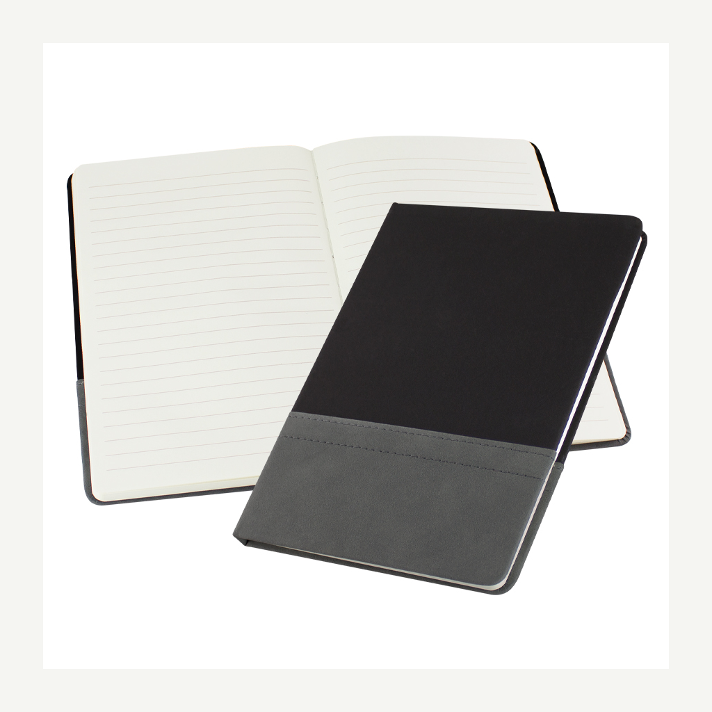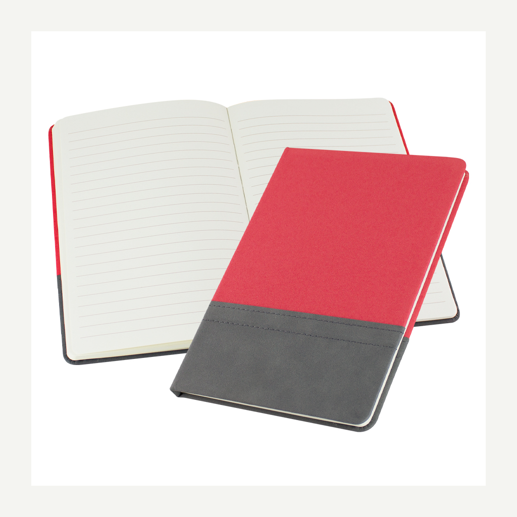 Elegante cuaderno tamaño A5, con cubierta de cartón piedra forrada en Velvet PU (tela aterciopelada) bicolor de 3mm de espesor, con doble costura. Interior 80 hojas lineadas amarillas de 80gsm. Presentación individual en bolsa de polipropileno.