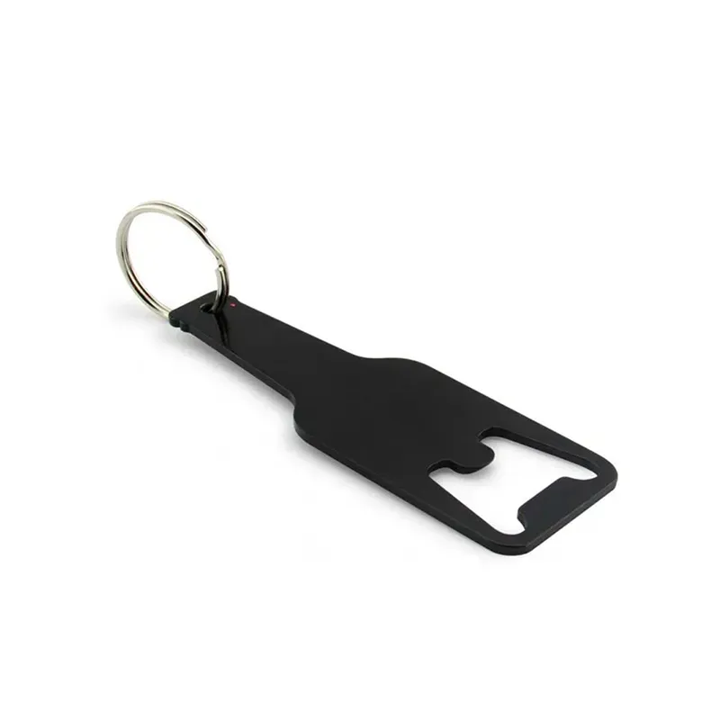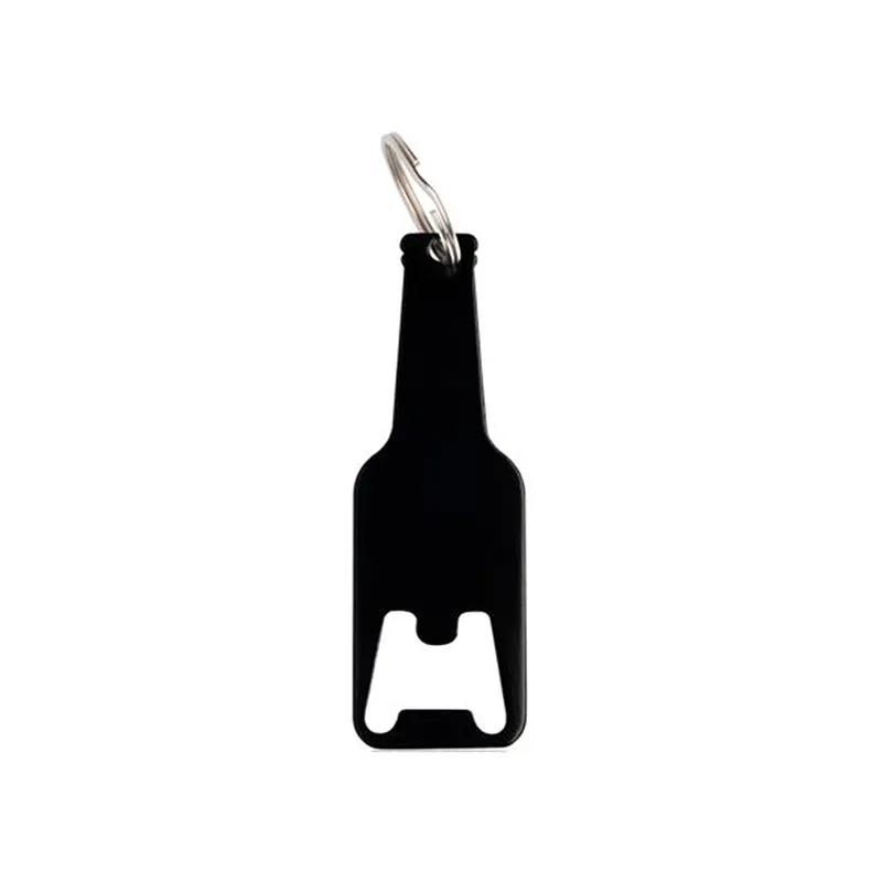 Destapador metálico compacto y resistente. Fabricado en acero inoxidable 420, ofrece una alta durabilidad y resistencia al desgaste. Cuenta con un diseño ergonómico, acabado en color negro y aro metálico tipo llavero que facilita su transporte. Es ideal para abrir botellas con tapa corona en reuniones, eventos o para llevar siempre a mano en el llavero.