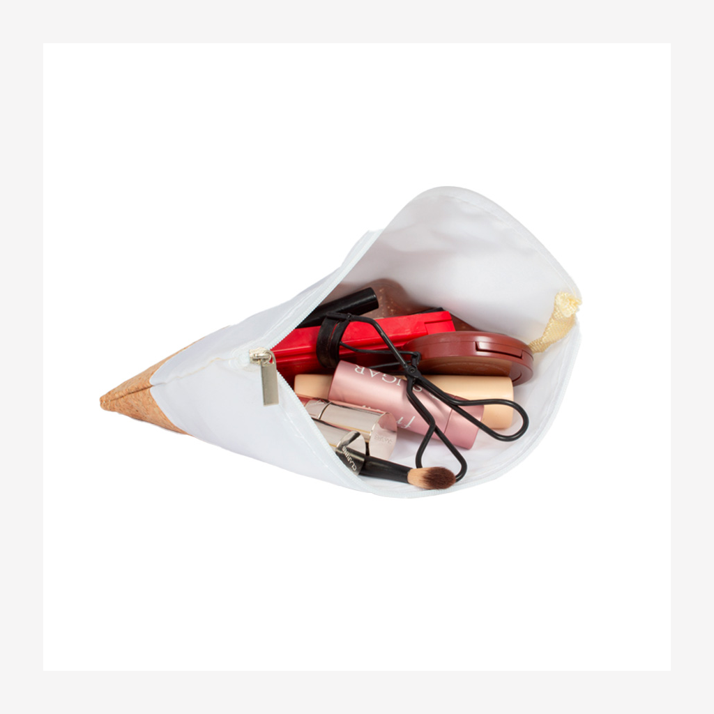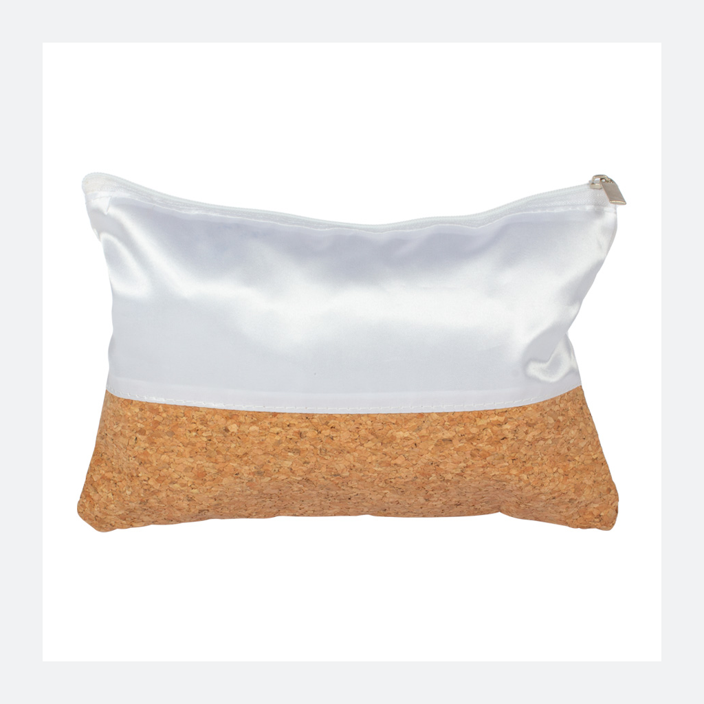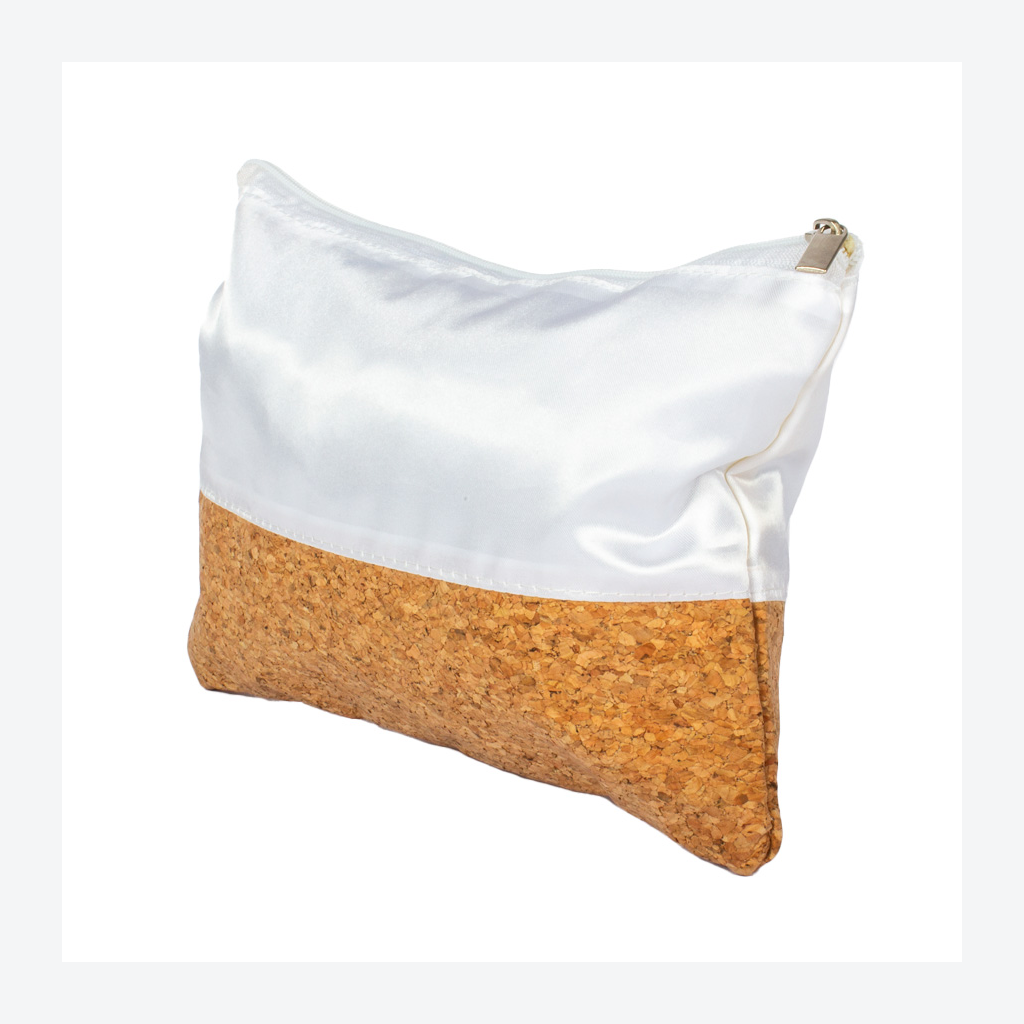 Estuche Cosmetiquero de corcho y poliéster satinado blanco, con cremallera.