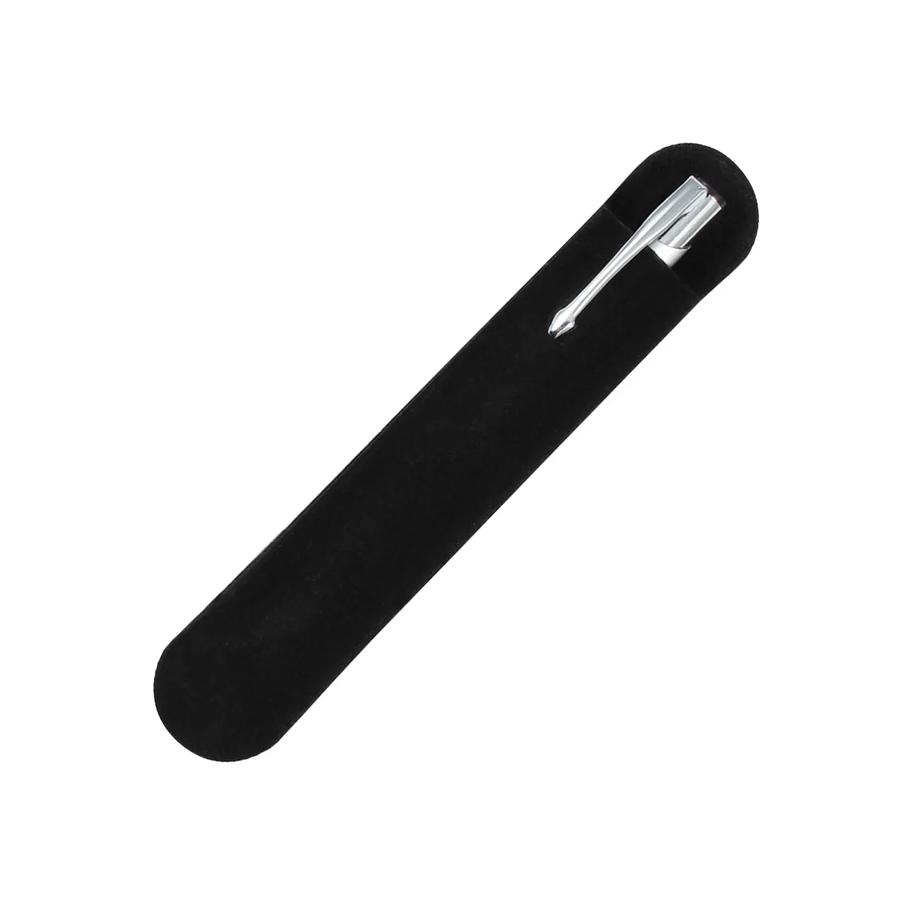 Funda de Pana (aterciopelada) negra, para 1 bolígrafo. Puntas redondeadas. Superficie ajustada para bolígrafos gruesos. No incluye Bolígrafo.