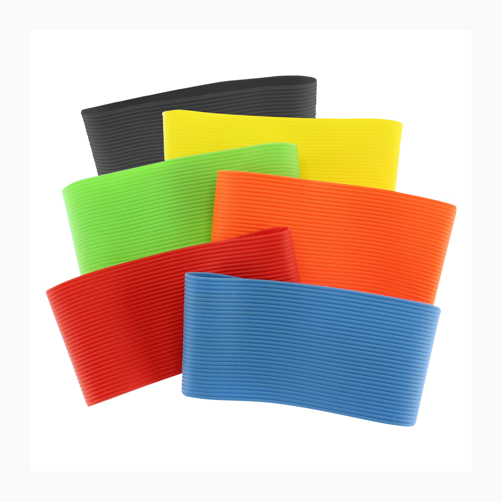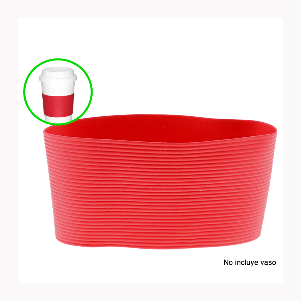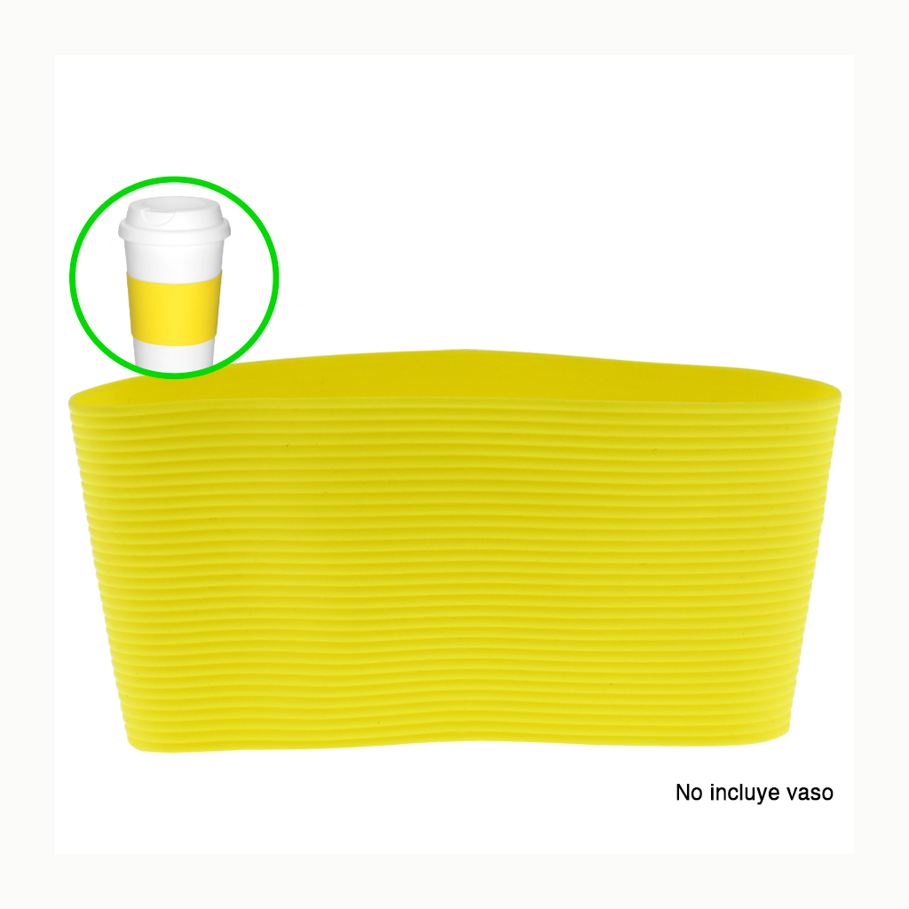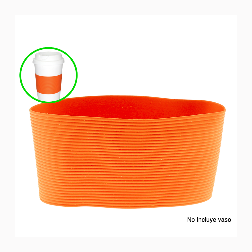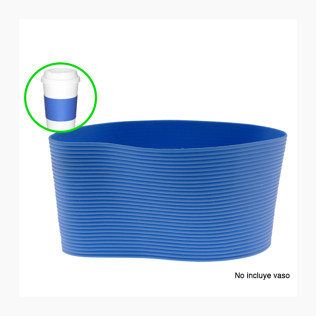 Grip (mango) de silicona texturada de color. Se usa como complemento del vaso plástico blanco M14. Ambos productos se venden por separado.