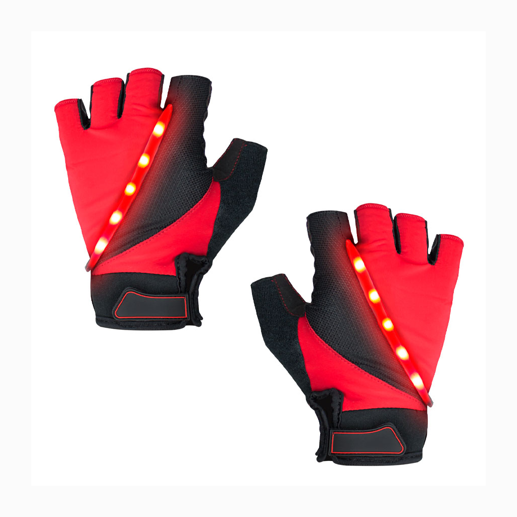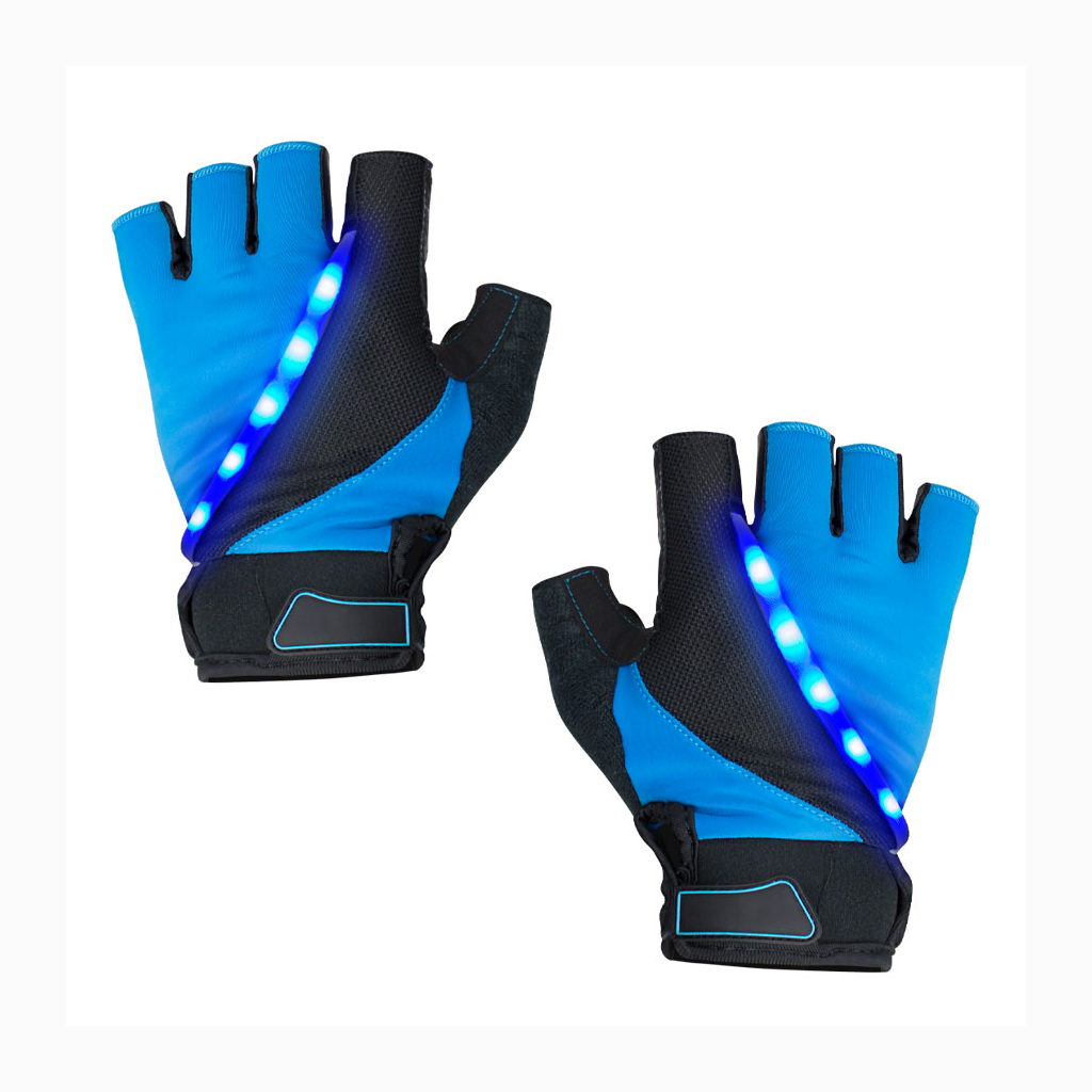 Par de Guantes de Ciclismo con 5 luces LED. 3 niveles de iluminación (fijo, estroboscópico lento, estroboscópico rápido). Luz LED de color coincidente con el color del guante. Usa 1 pila botón (incluida).