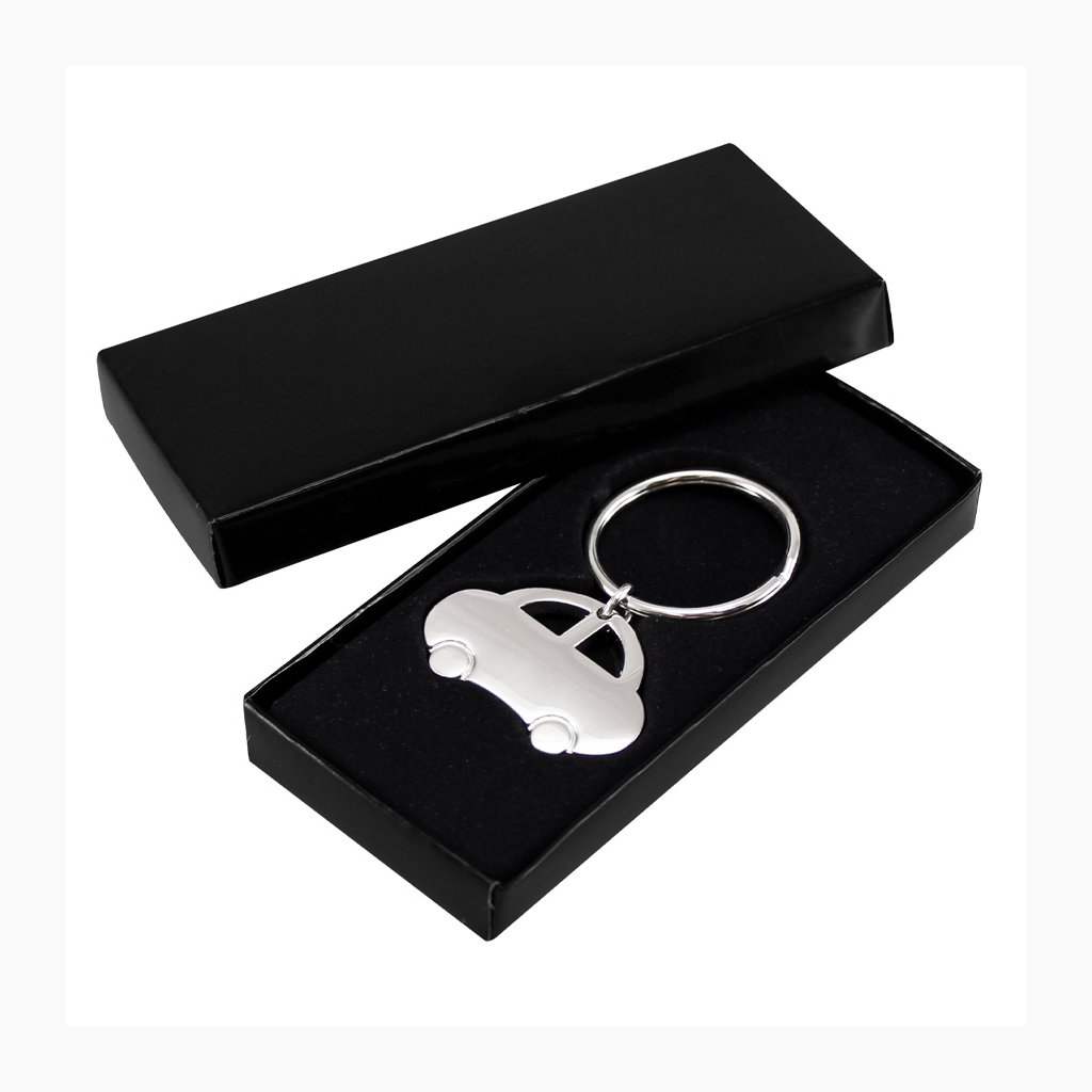 Llavero Metálico Automóvil. Presentación en estuche laminado negro con cuna aterciopelada.
