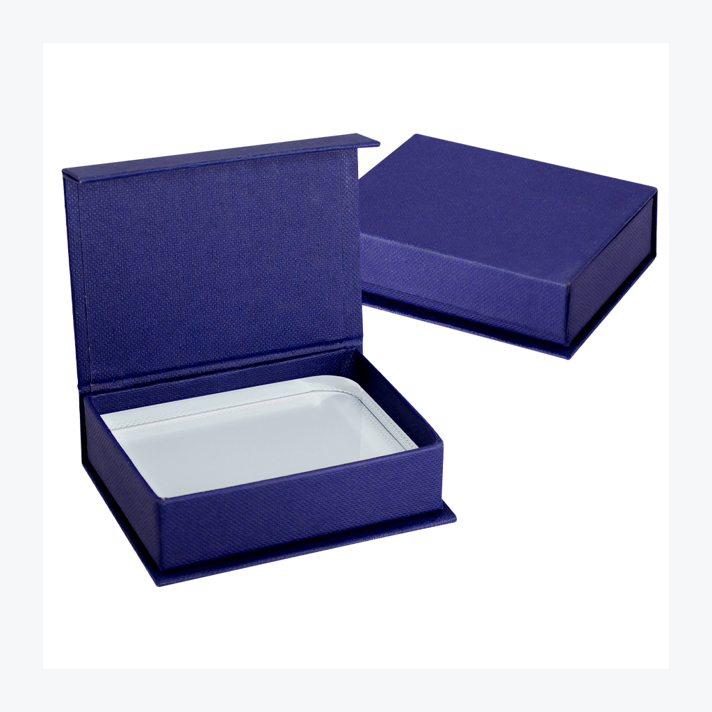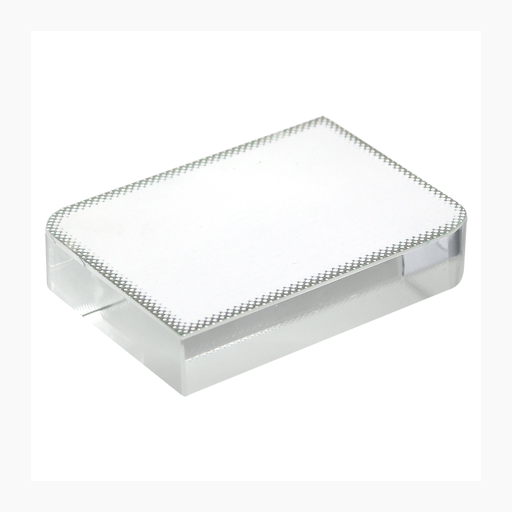 Mini-Trofeo rectangular de Cristal sólido para Sublimación, con 2 vértices redondeados. Presentación en caja de cartón azul.