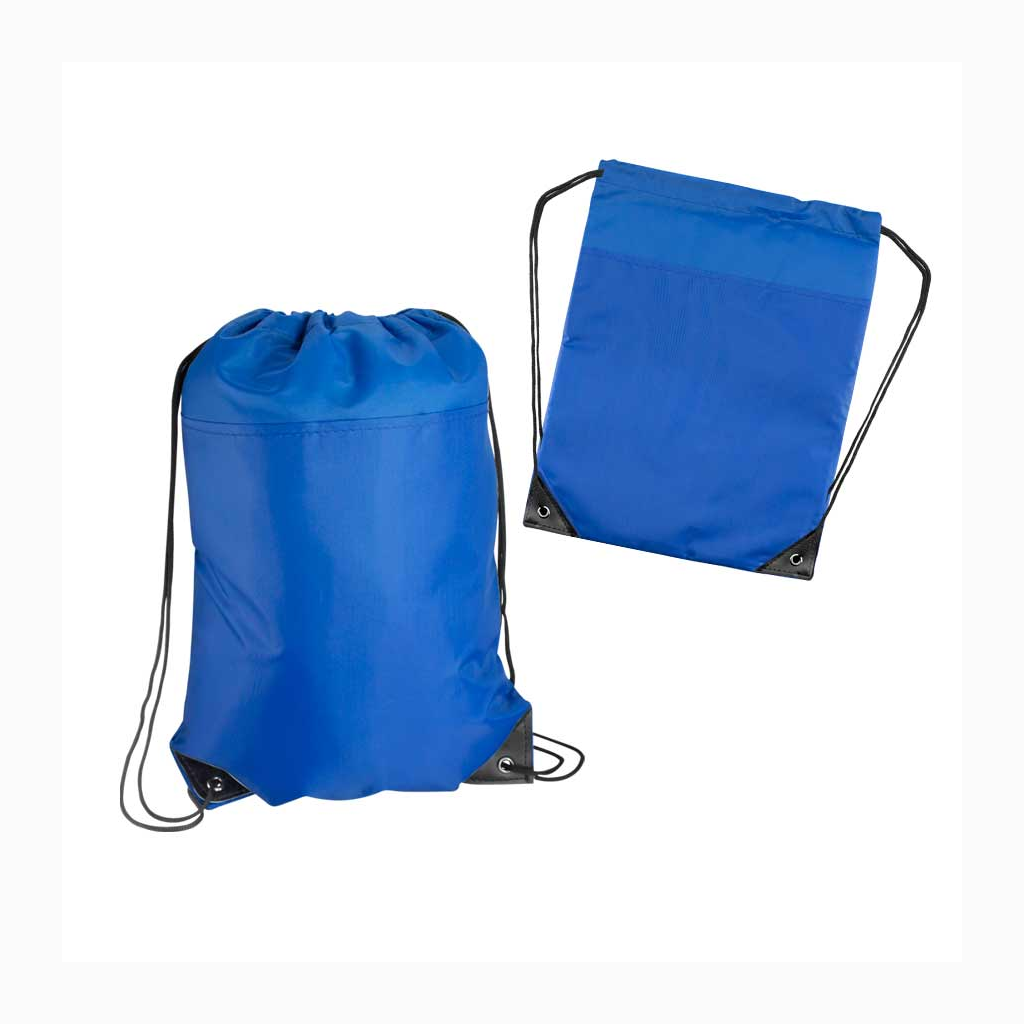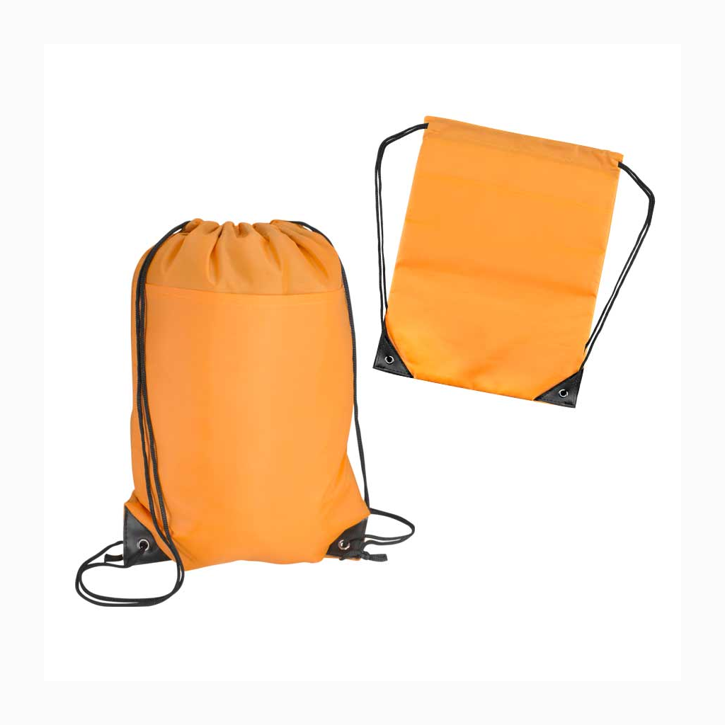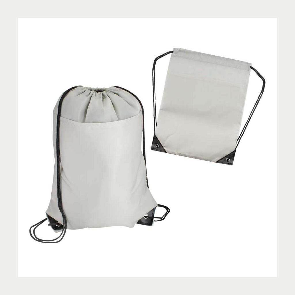 Mochila modelo «Cooler» de poliéster 210D/PU, interior tela aislante gris 12C PEVA, con relleno de esponja PE FOAM de 2mm. Ojetillos reforzados con PU negro. Bolsillo delantero exterior. Tiras de cordón negro.