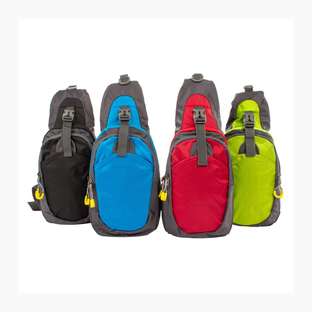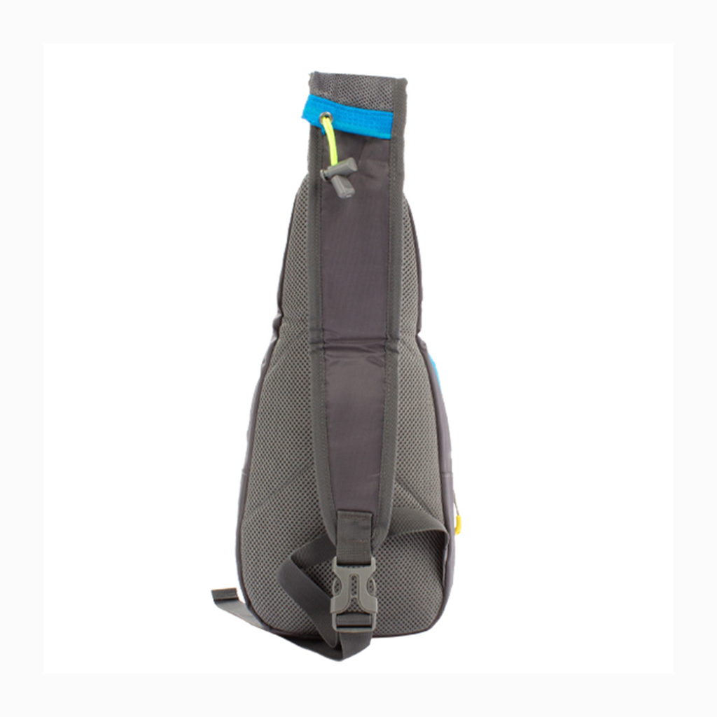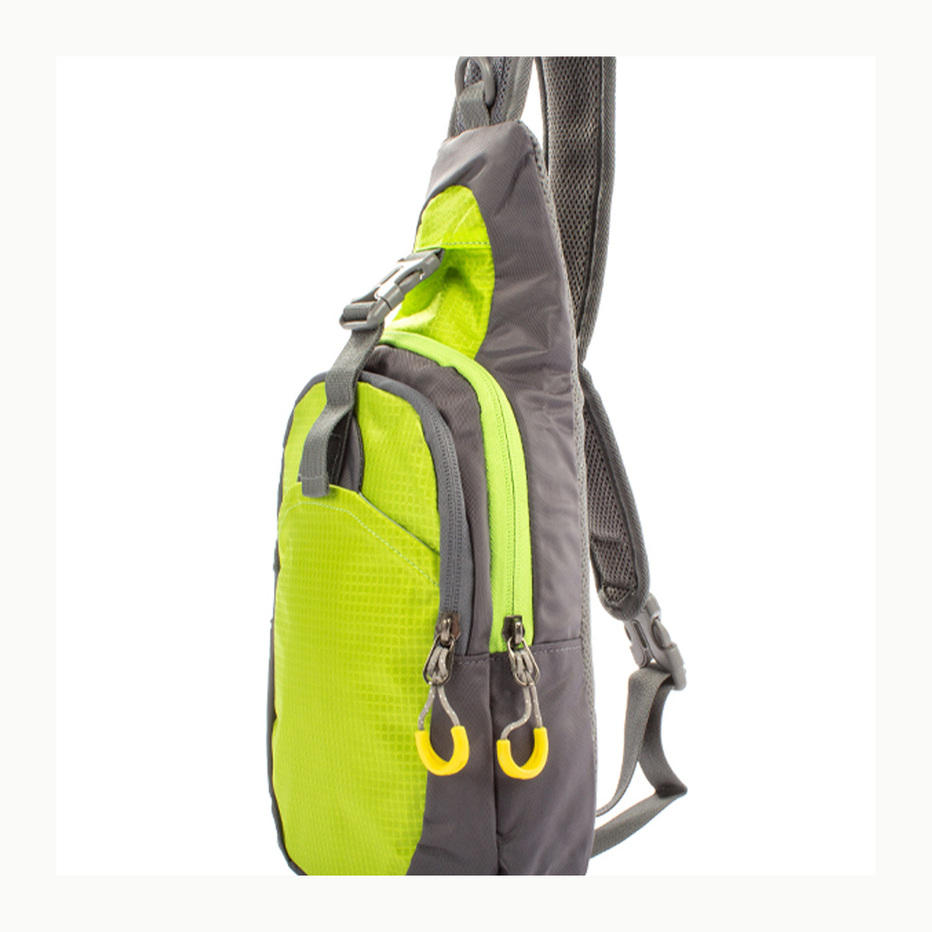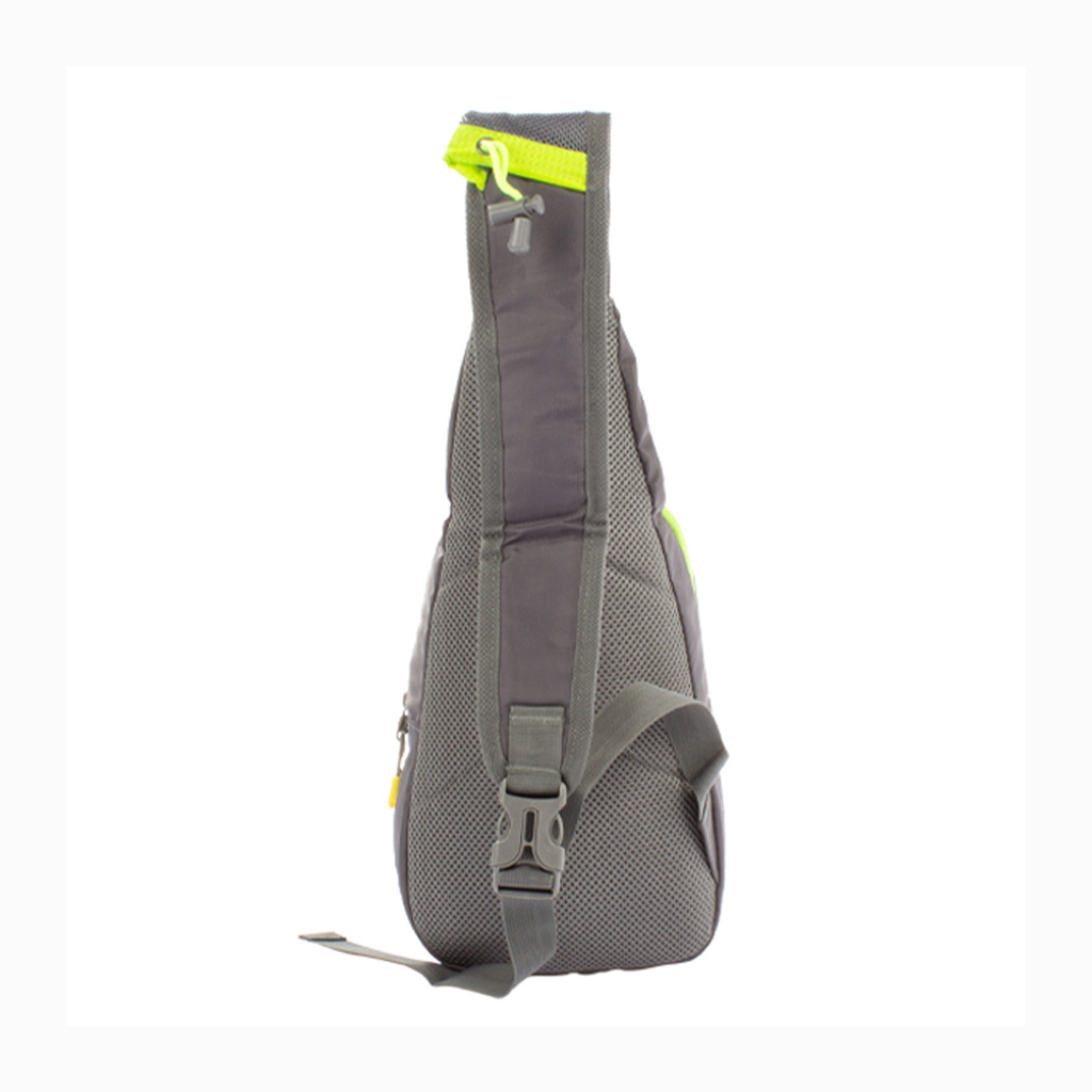 Mochila cruzada modelo «Crossback», en tela poliéster Stretch 210 Waterproof y poliéster «Ripstop». Incluye 2 compartimentos independientes + 1 bolsillo delantero + 1 bolsillo malla ajustable, gancho para colgar y hebilla de protección delantera. Reverso acolchado, con tela malla anti-transpiración para la espalda. Ideal para practicar deportes.