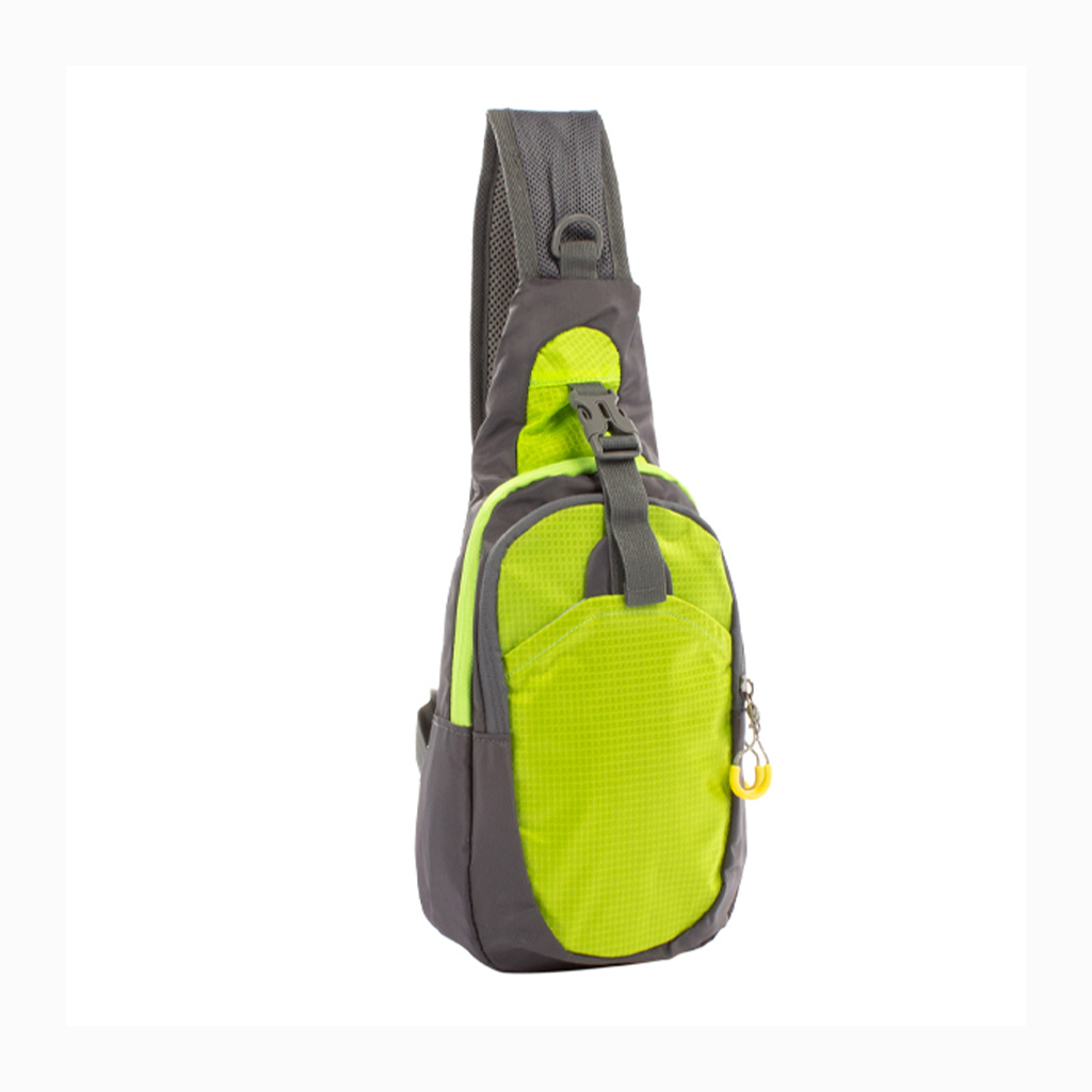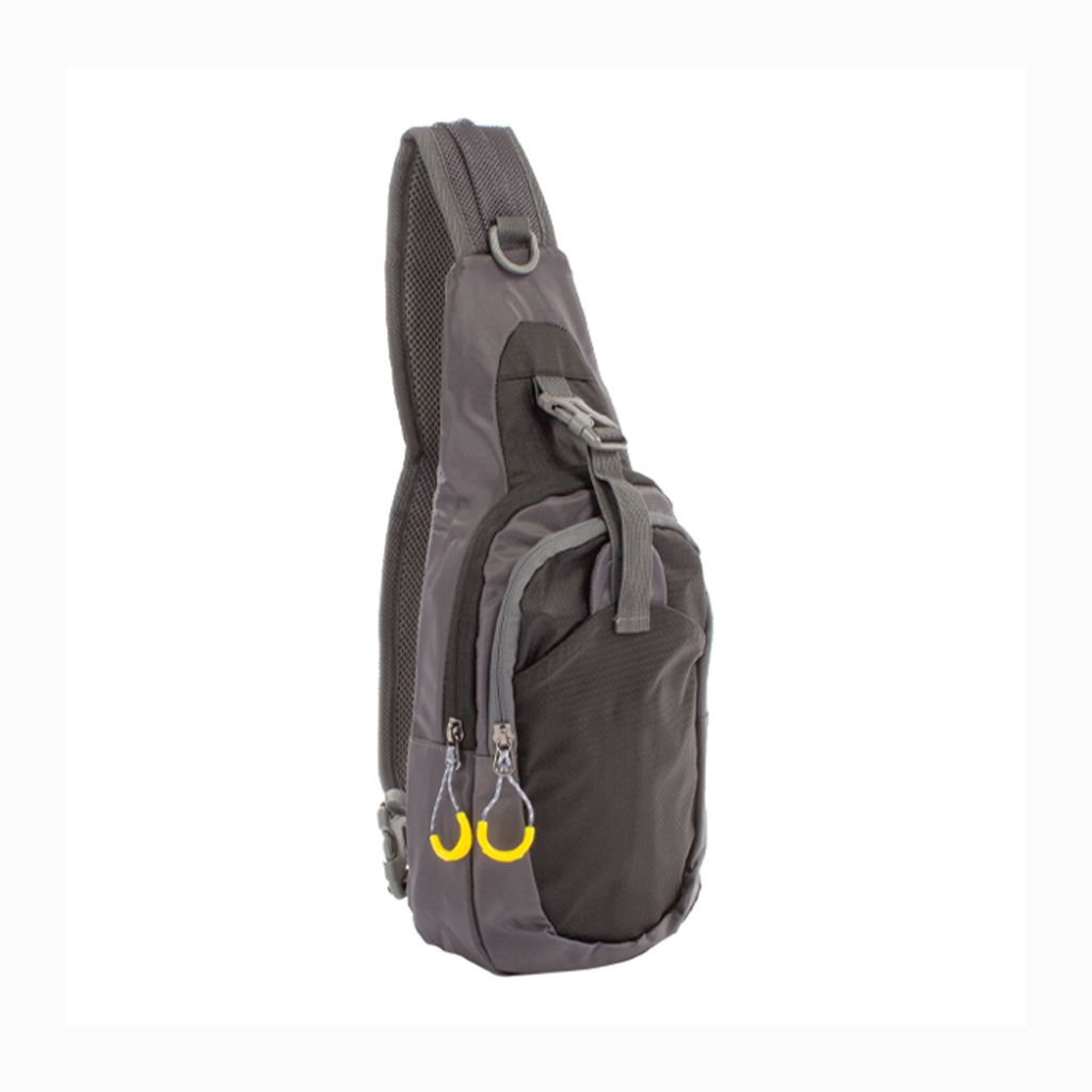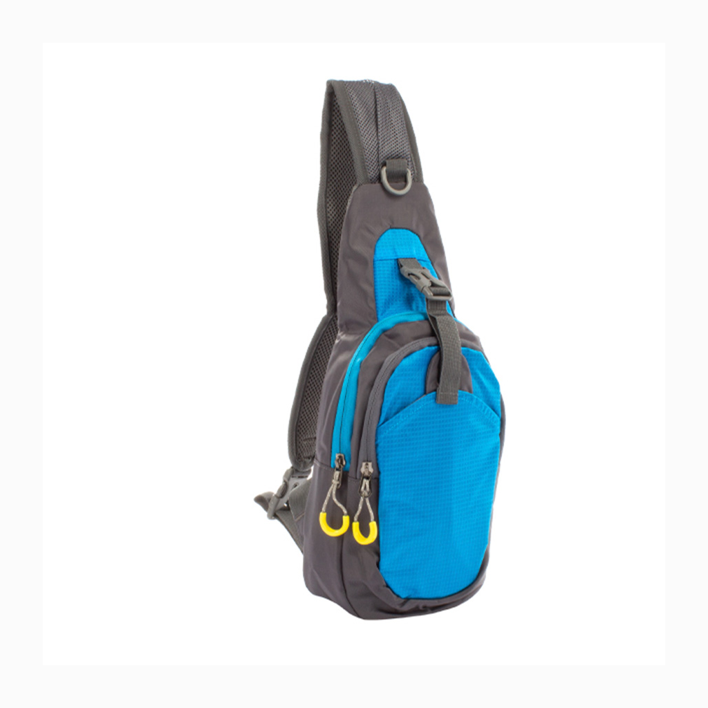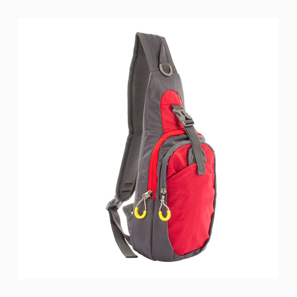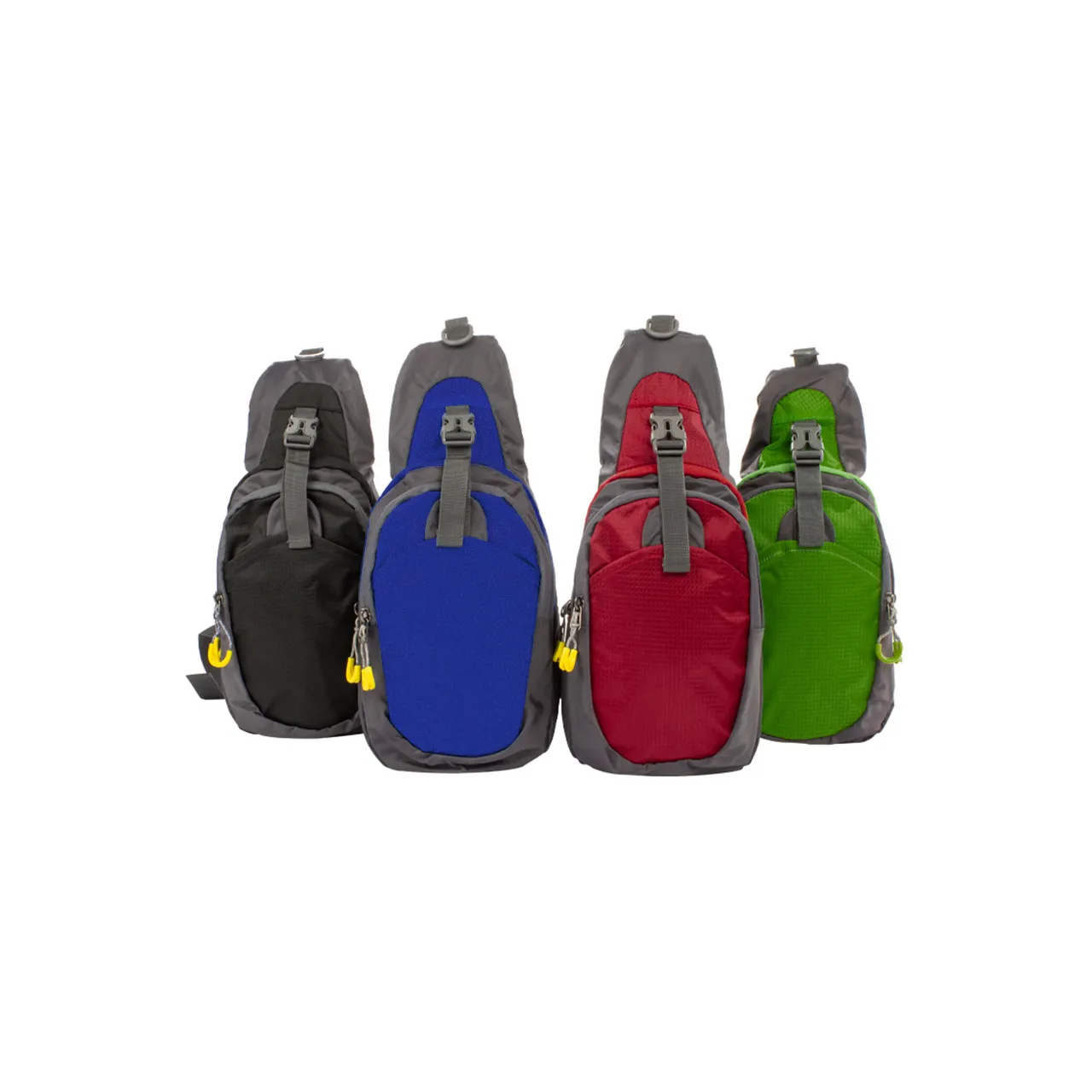 Mochila cruzada modelo «Crossback», en tela poliéster Stretch 210 Waterproof y poliéster «Ripstop». Incluye 2 compartimentos independientes + 1 bolsillo delantero + 1 bolsillo malla ajustable, gancho para colgar y hebilla de protección delantera. Reverso acolchado, con tela malla anti-transpiración para la espalda. Ideal para practicar deportes.
