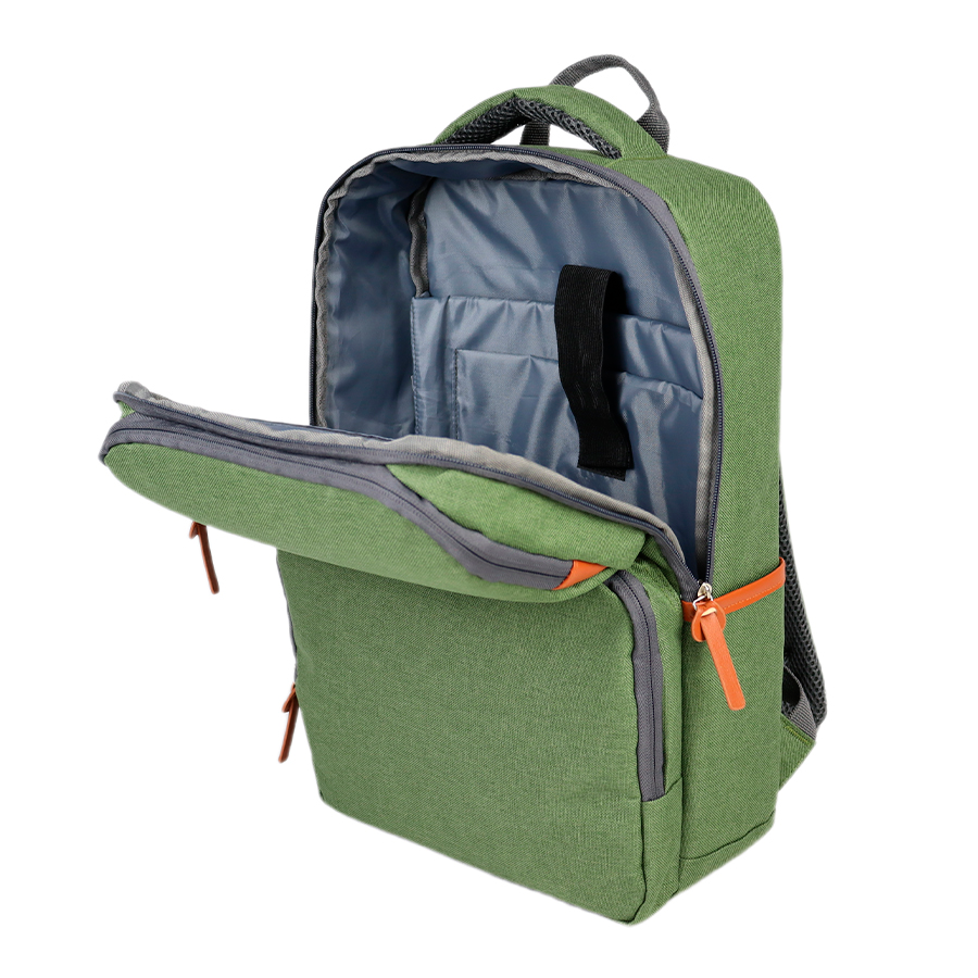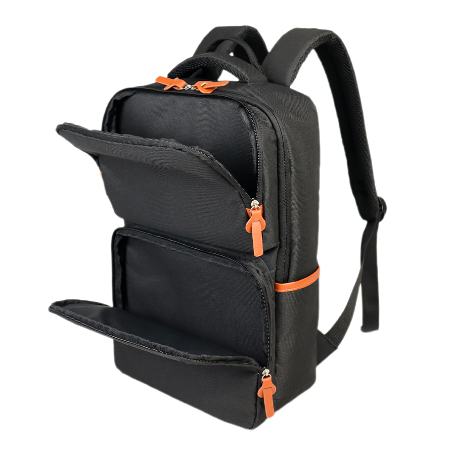 Mochila Porta-Notebook modelo «JAZZ». En tela poliéster 600D/PVC con detalles y tiradores de cierre en 210D/PU color marrón. Capacidad 11 litros, tamaño 27.5 x 41 x 9.5 cm. Incluye múltiples compartimentos interiores reforzados y acolchados para Laptop + 2 bolsillos delanteros + 2 bolsillos laterales.