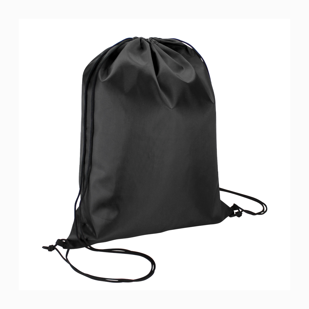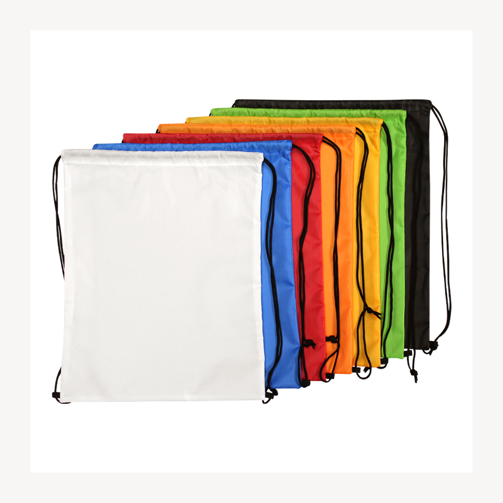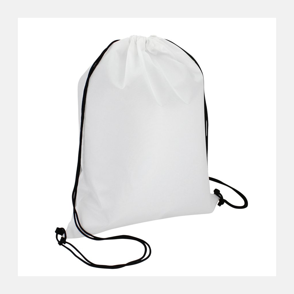 Mochila simple de 210D/PU poliéster, con tiras de cordón negro. Color blanco ideal para imprimir en sublimación.