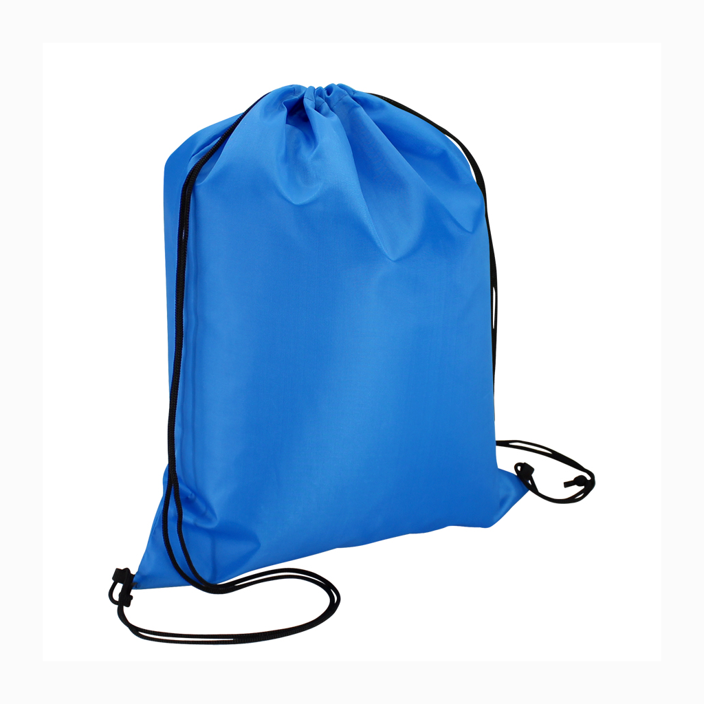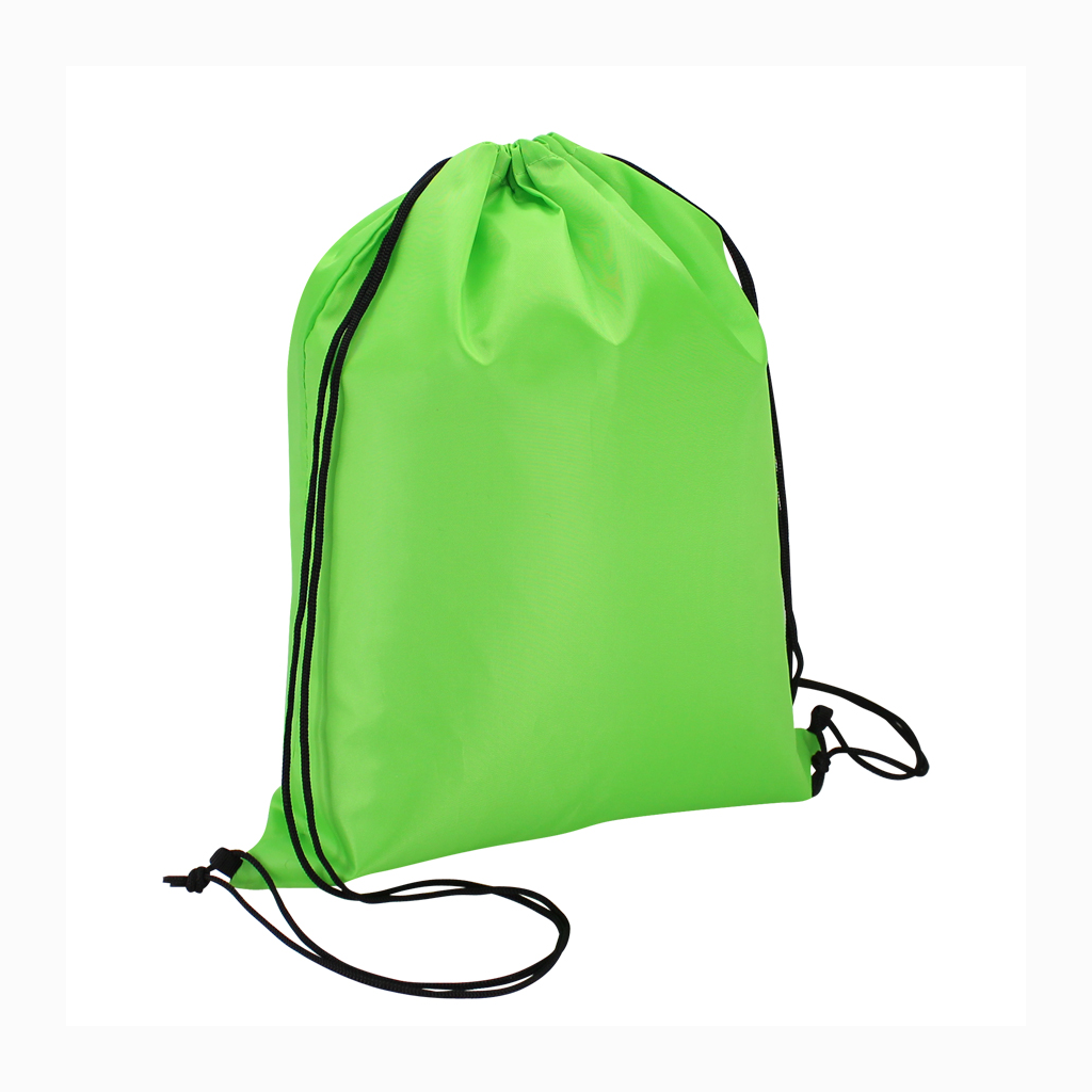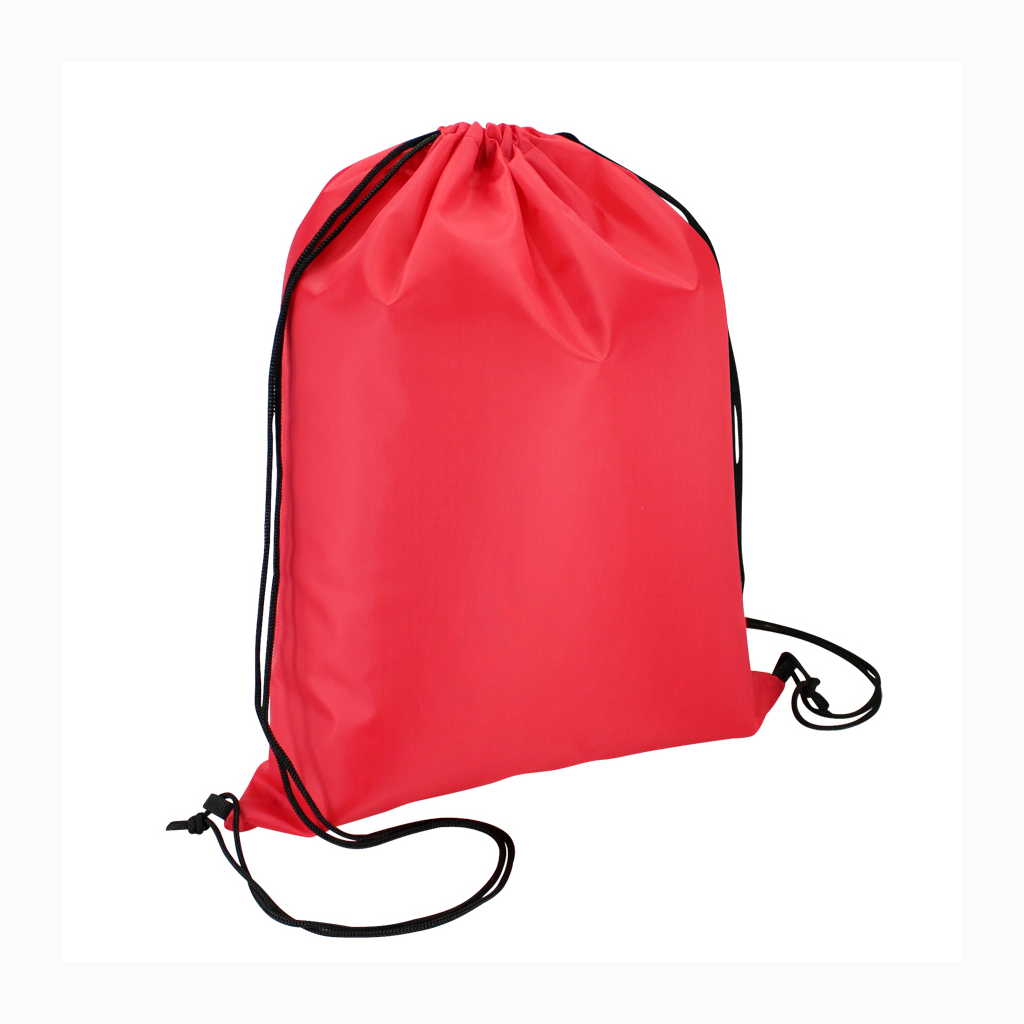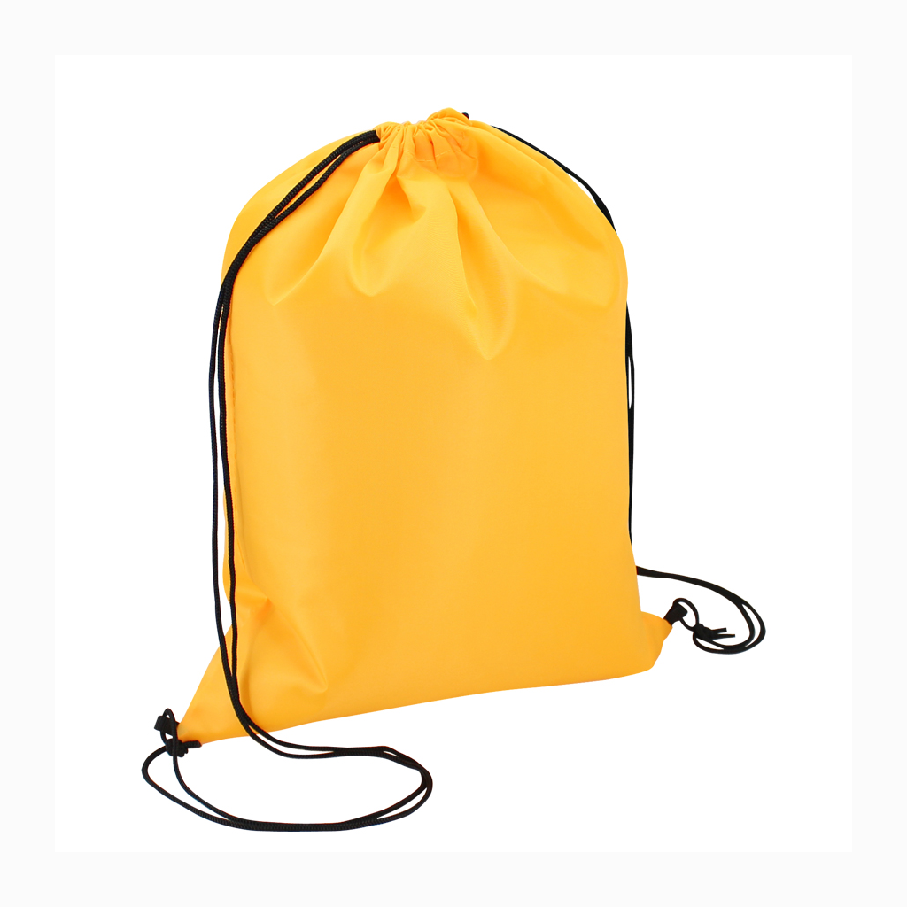 Mochila simple de 210D/PU poliéster, con tiras de cordón negro. Color blanco ideal para imprimir en sublimación.