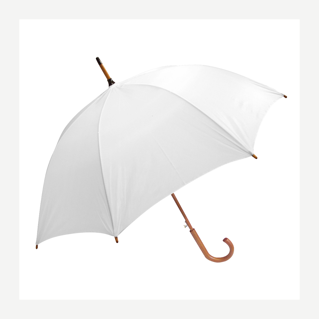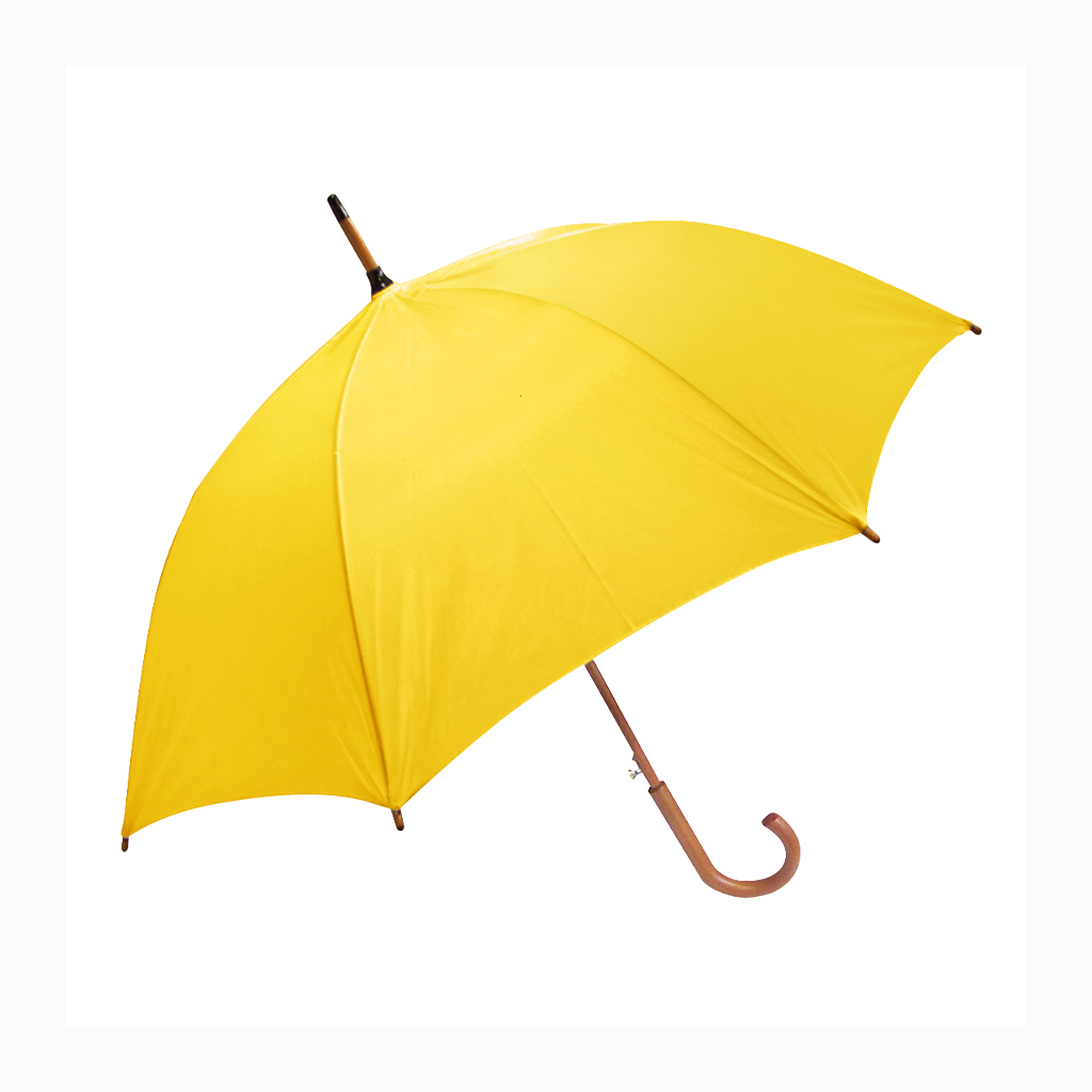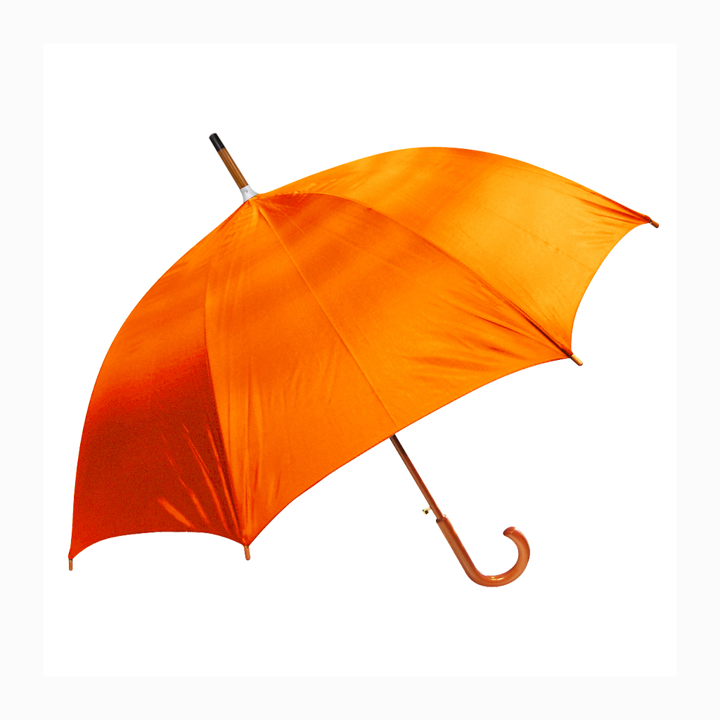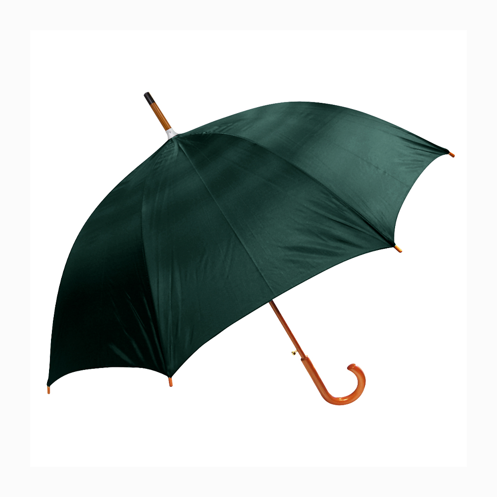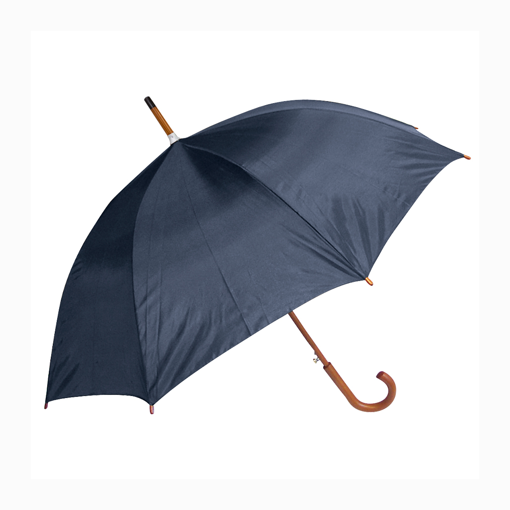 Paraguas ejecutivo con cuerpo y mango curvo de madera barnizada. Varas reforzadas de fibra de vidrio, sistema de apertura automático, 8 cascos tela Nylon 190T.