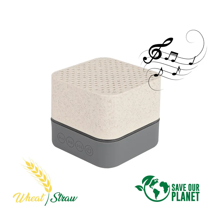 Parlante altavoz de caña de trigo (wheat straw) «LIFE» con juego de luces LED y sección inferior de silicona gris con funciones.