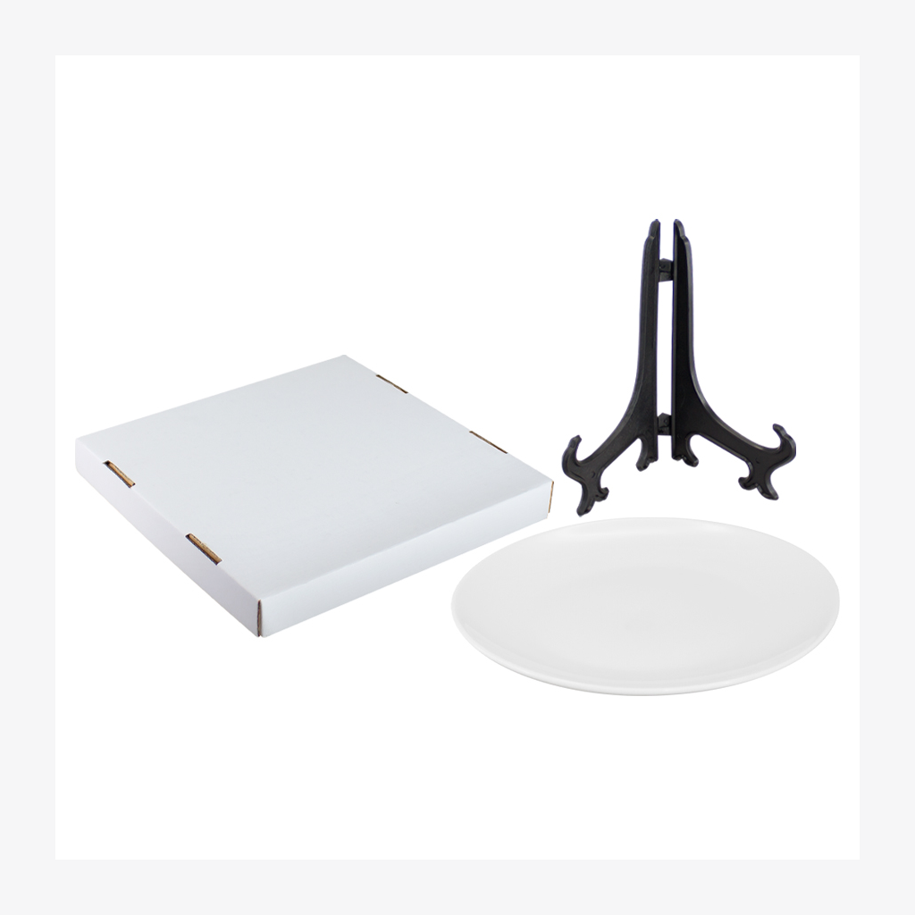 Plato de Porcelana tamaño mediano, con cobertura para Sublimación. Presentación en caja de cartón blanco.