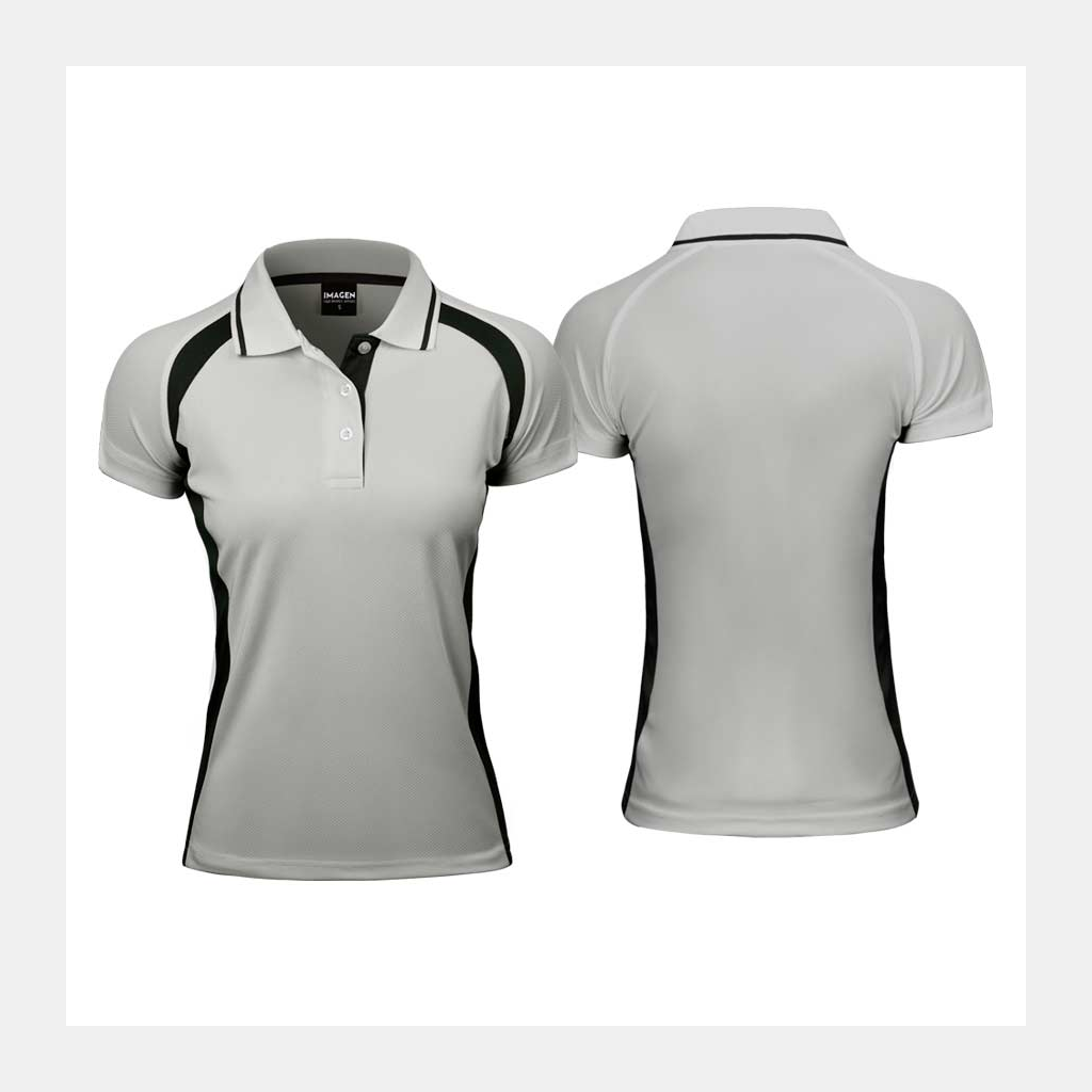 Fina Polera deportiva 100% poliéster de 140gr/m2, para MUJER, bicolor detalles grises. Cuello polo, manga corta. Ideal para uso en tenis y deportes indoor. Presentación individual en bolsa de polipropileno transparente.