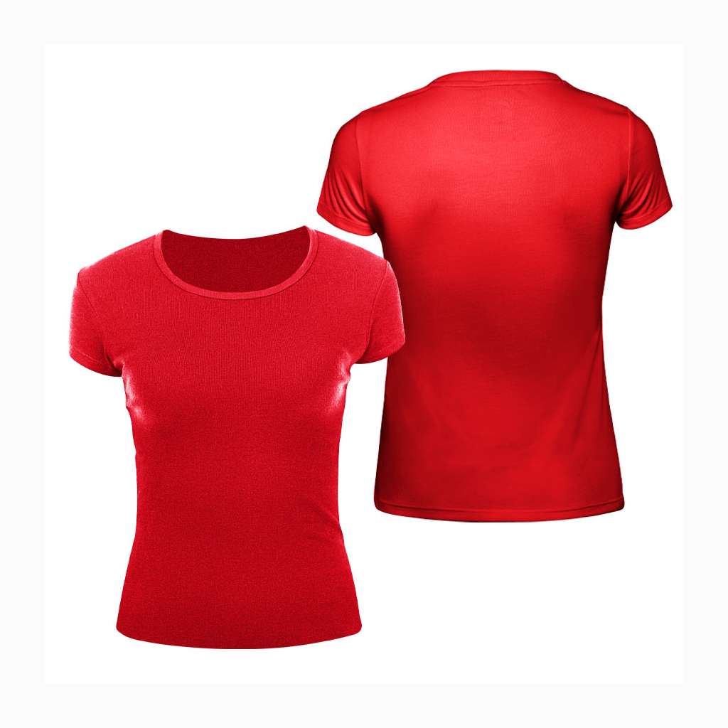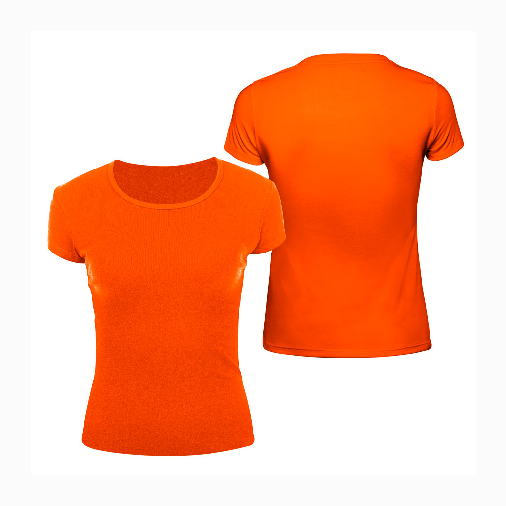 Polera 100% ALGODÓN pre-lavado de 180gr/m2, para MUJER. Cuello redondo, manga corta. Presentación individual en bolsa de polipropileno transparente.