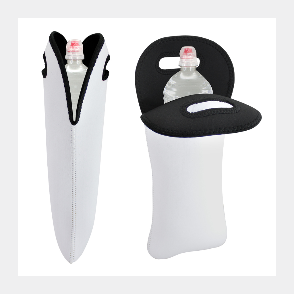 Bolso Porta-Botella con asa, en tela aislante Poly-Neopreno 4mm para Sublimación. Presentación en bolsa de Polipropileno.