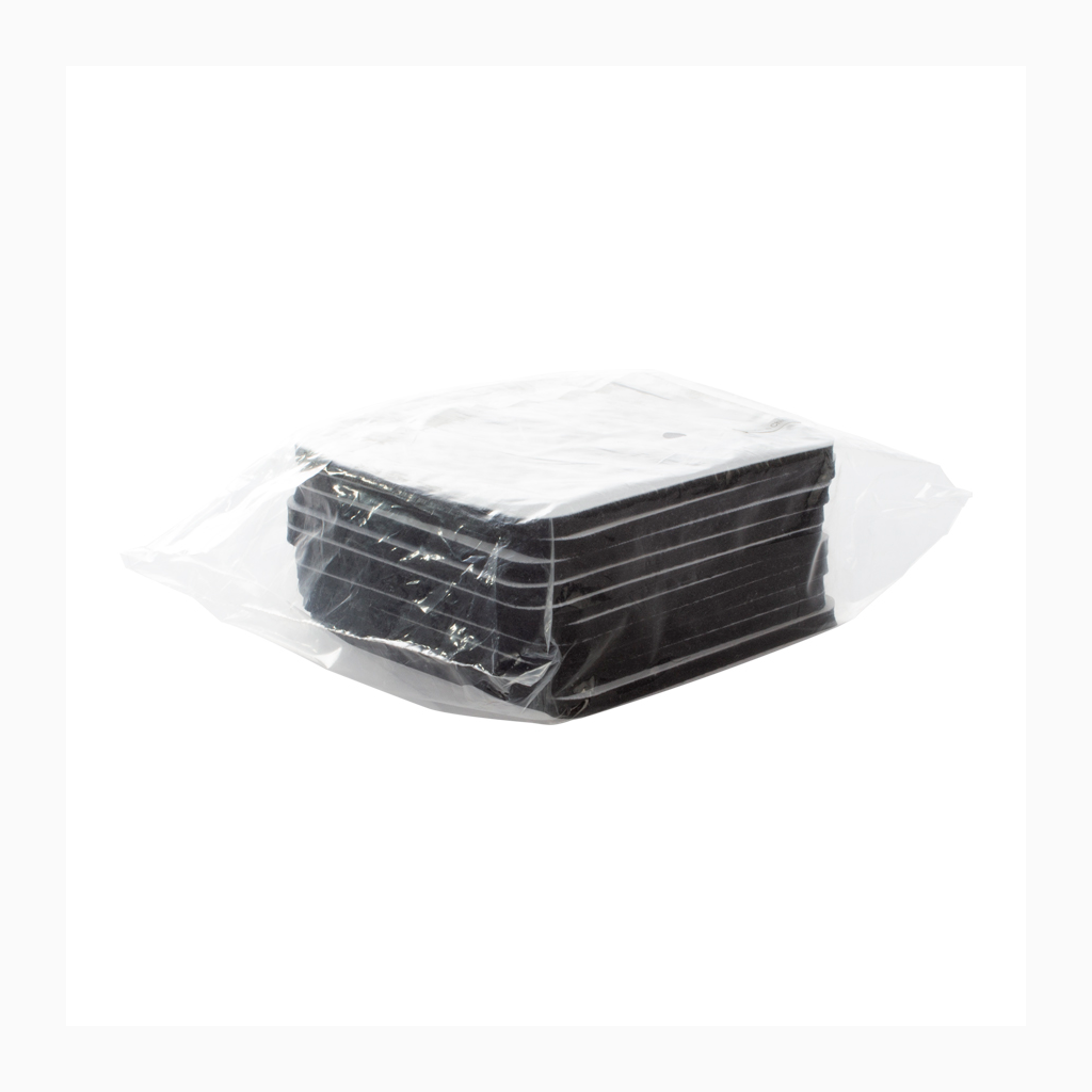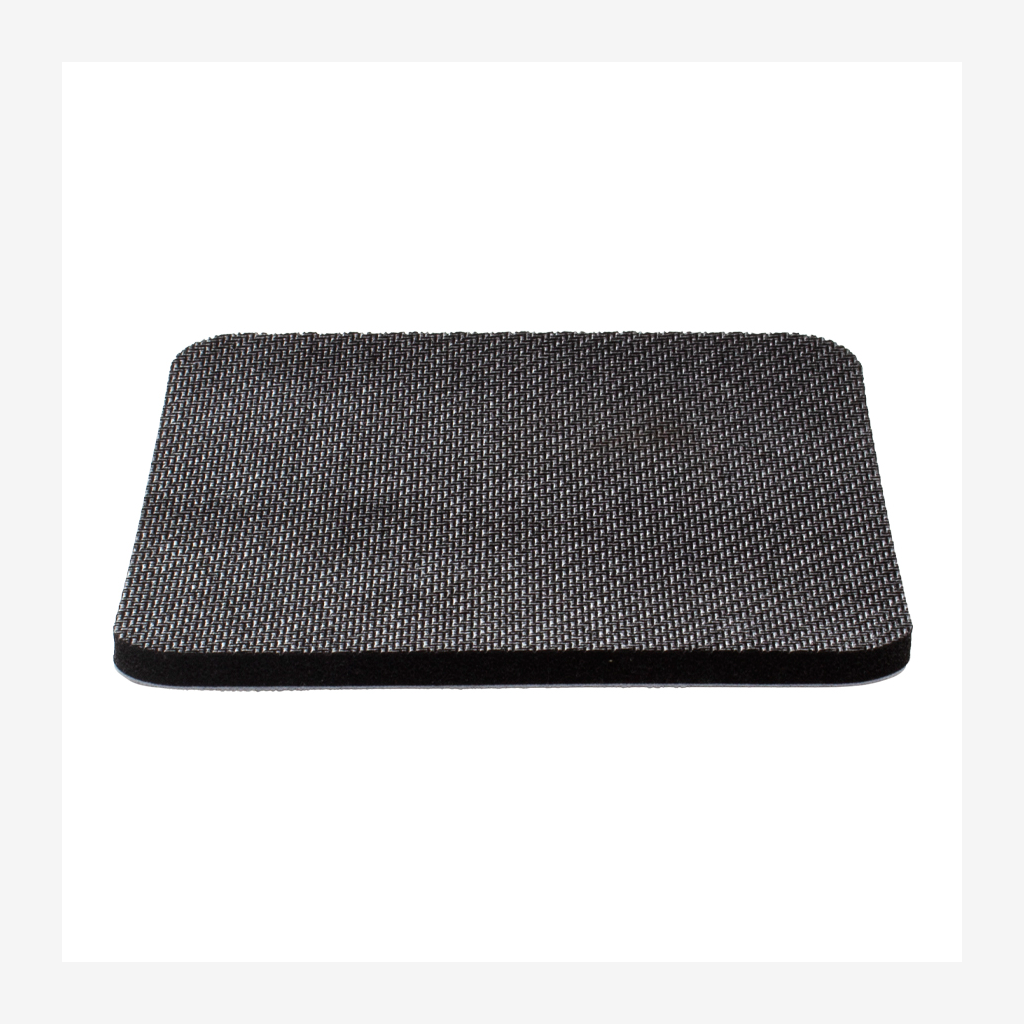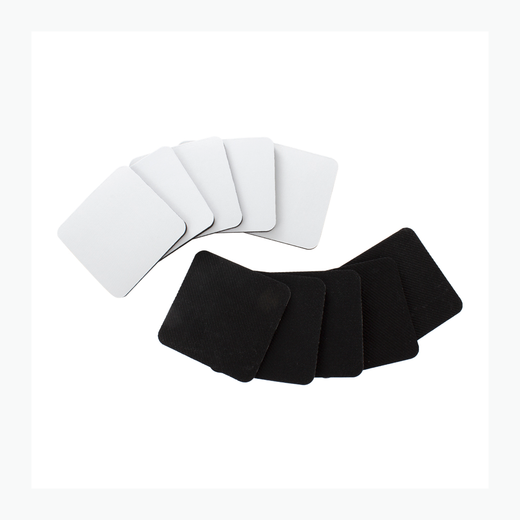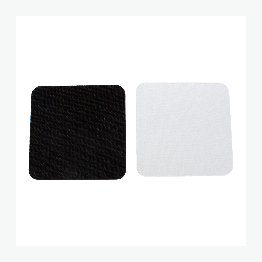 Posavaso cuadrado de 10x10cm. y 5mm de espesor, esquinas redondeadas, con base de silicona negra y cubierta de tela poliéster blanco para Sublimación.