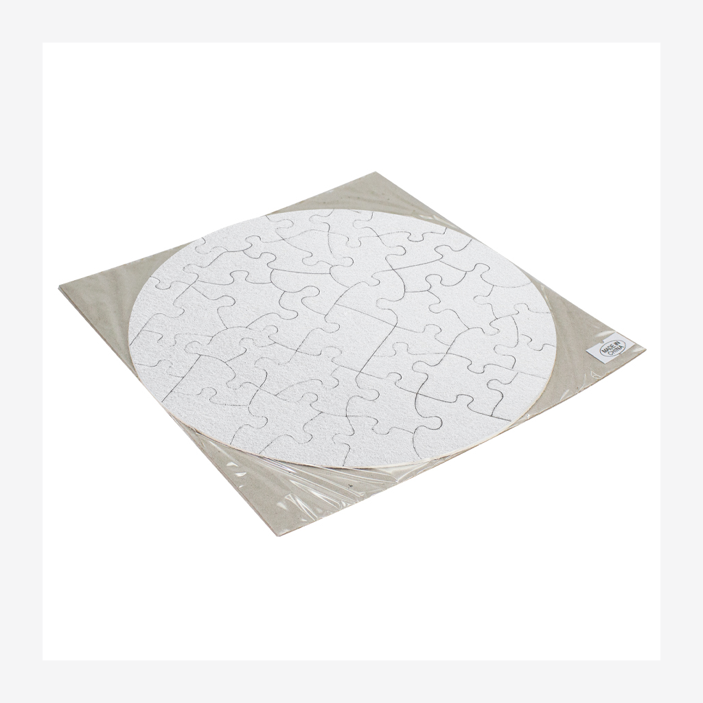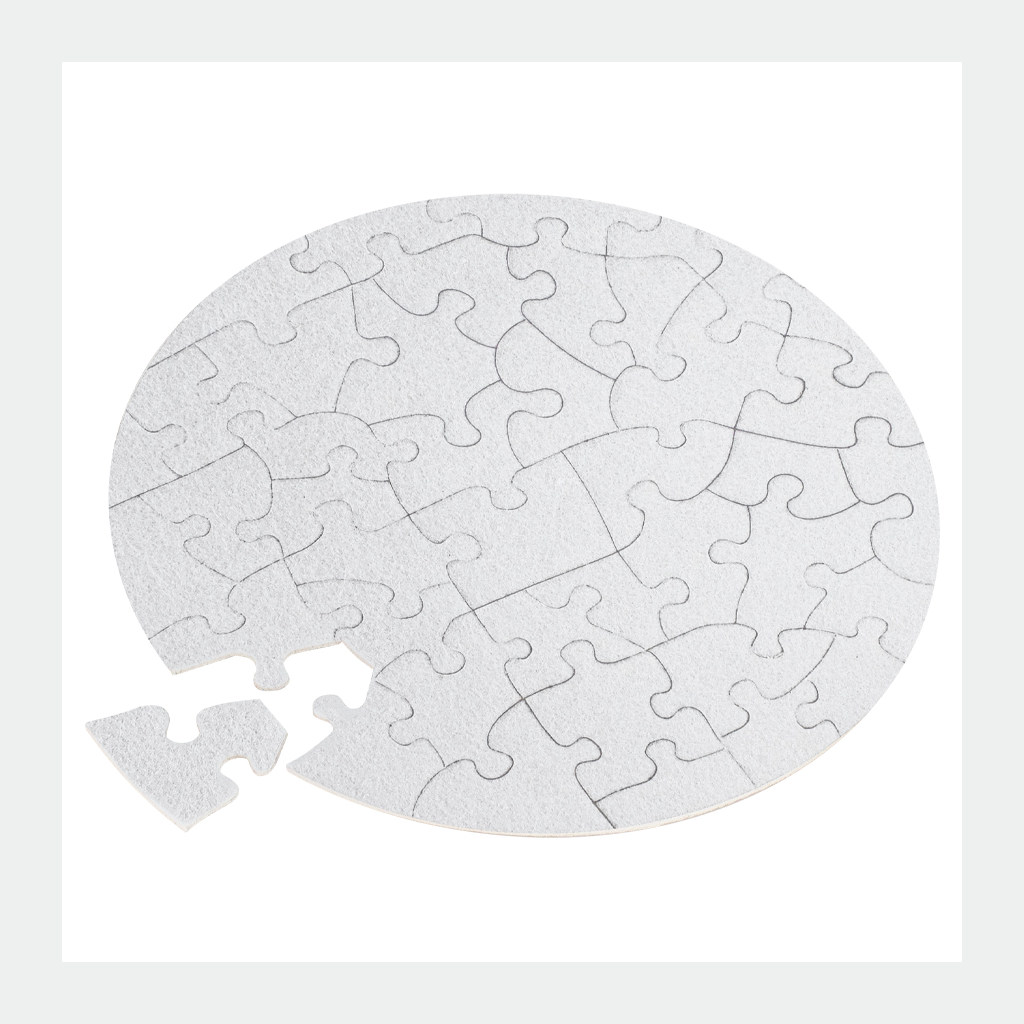 Puzzle Rompecabezas circular de 41 piezas, en cartón sandwich 1.2mm con cobertura aterciopelada para Sublimación. Presentación en bolsa de Polipropileno transparente.