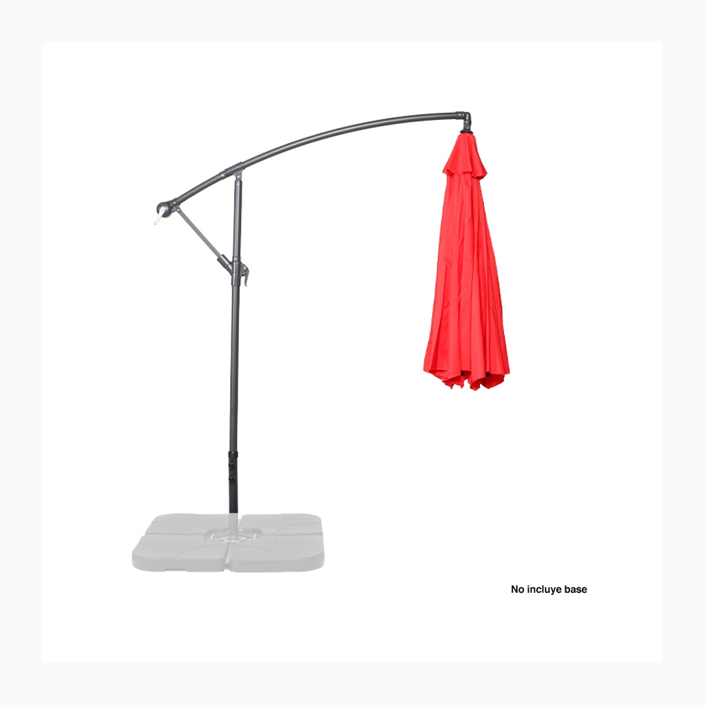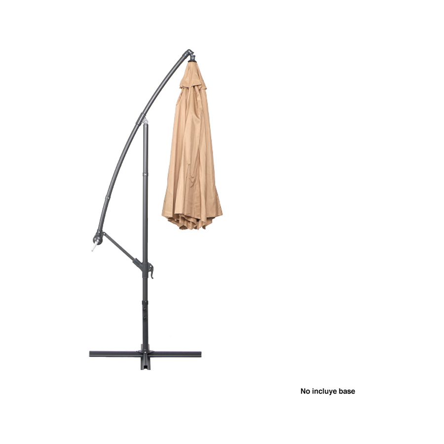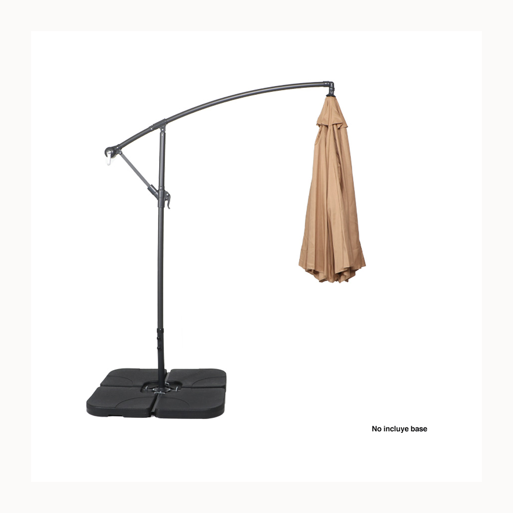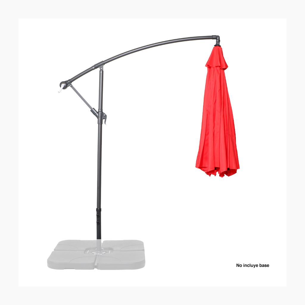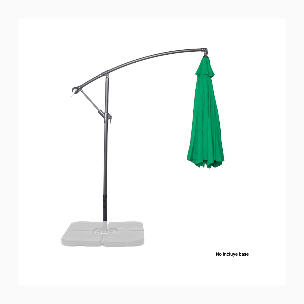 Quitasol colgante redondo de Ø3m, modelo «Banana», con 8 cascos de lona Poliéster UV impermeable de 160g. Contiene varas reforzadas de Acero recubierto de 12 x 18mm, asta de Acero recubierto de 48mm, sistema de apertura manual.