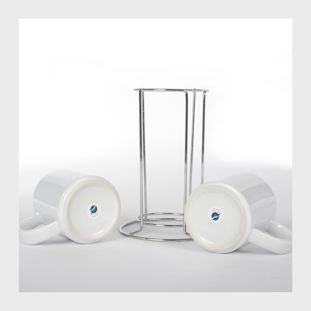 Set de 2 tazones cerámicos para Sublimación, en contenedor de Acero Inoxidable. Calidad superior «ORCA». Capacidad de cada Tazón: 250cc. Presentación en bolsa PP translúcido + estuche de cartón blanco.