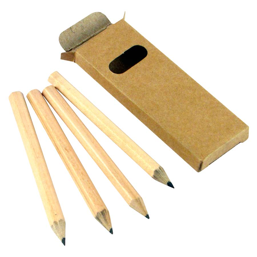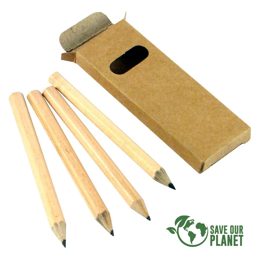 Set de 4 Lápices Grafito Negro hexagonales, en Estuche rectangular de Cartón reciclado con ventana.