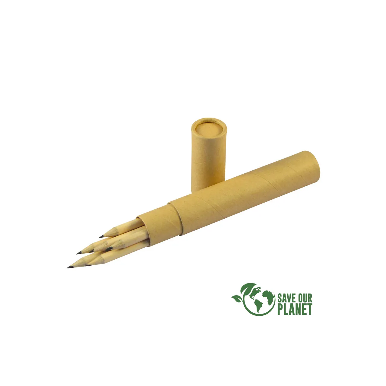 Set de 6 Lápices Grafito Negro, en Estuche cilíndrico de Cartón Reciclado.