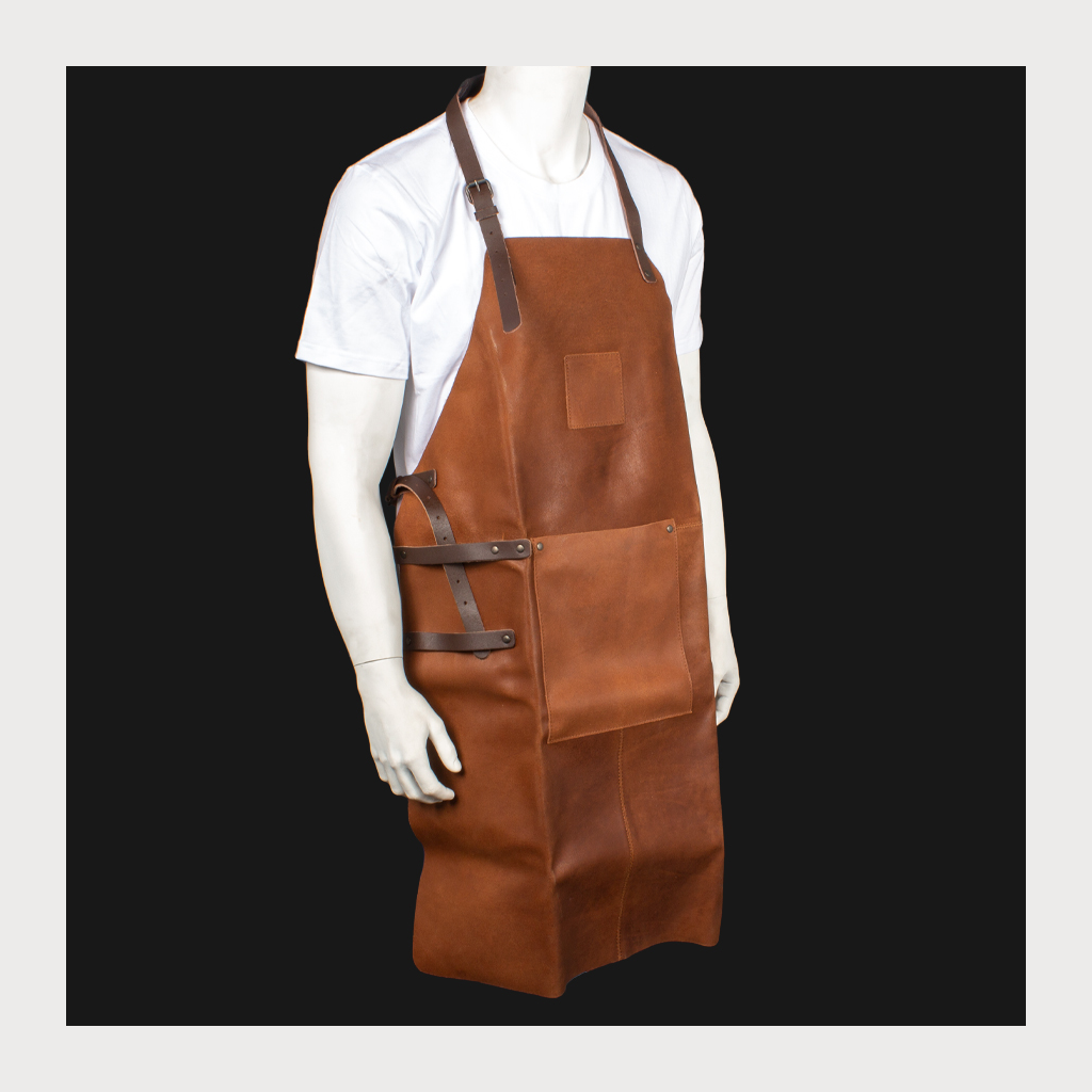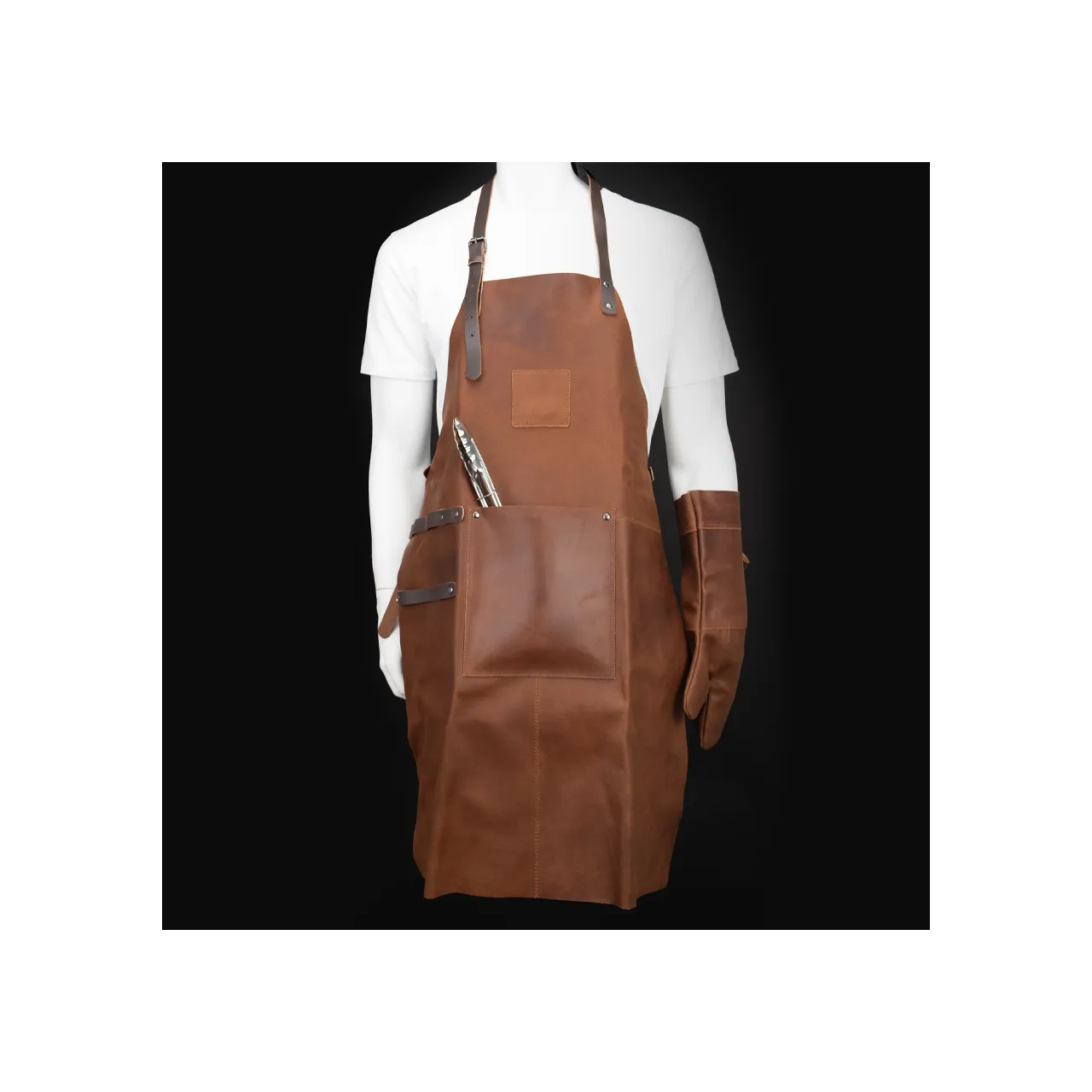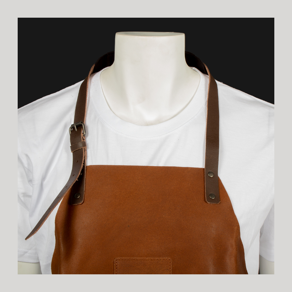 Un regalo fuera de serie. Deluxe set de Asador, contiene Pechera de Asador BBQ en Cuero tostado 100% genuino color café cognac, con cintas y porta-accesorios de Cuero 100% genuino color café oscuro. Remaches de acero envejecido y bolsillo delantero de 20.5 x 23 cm. Cuadrado para logo de 8 x 8 cm. Contiene además largo mitón de Asador BBQ en Cuero engamuzado 100% genuino color café cognac y tenazas de Acero inoxidable. Presentación en elegante caja de regalo de cartón negro con ventana de mica transparente y gráfica a todo color con descripción de los elementos del set.